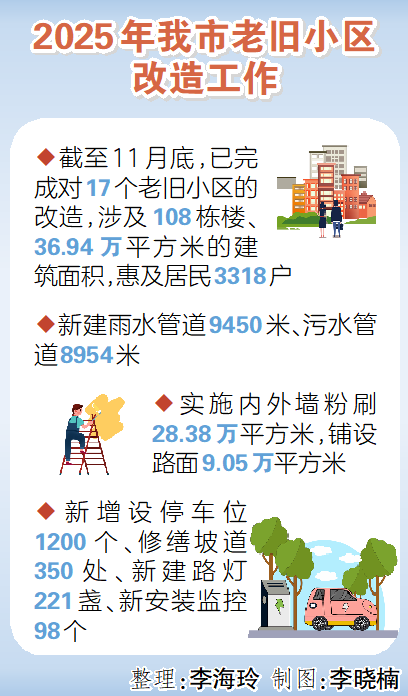 今年我市原定计划改造的17个老旧小区,目前已全部改造完成,惠及居民3000余户,不仅改出了老区的新颜值,更改出了民生温度与治理精细度。