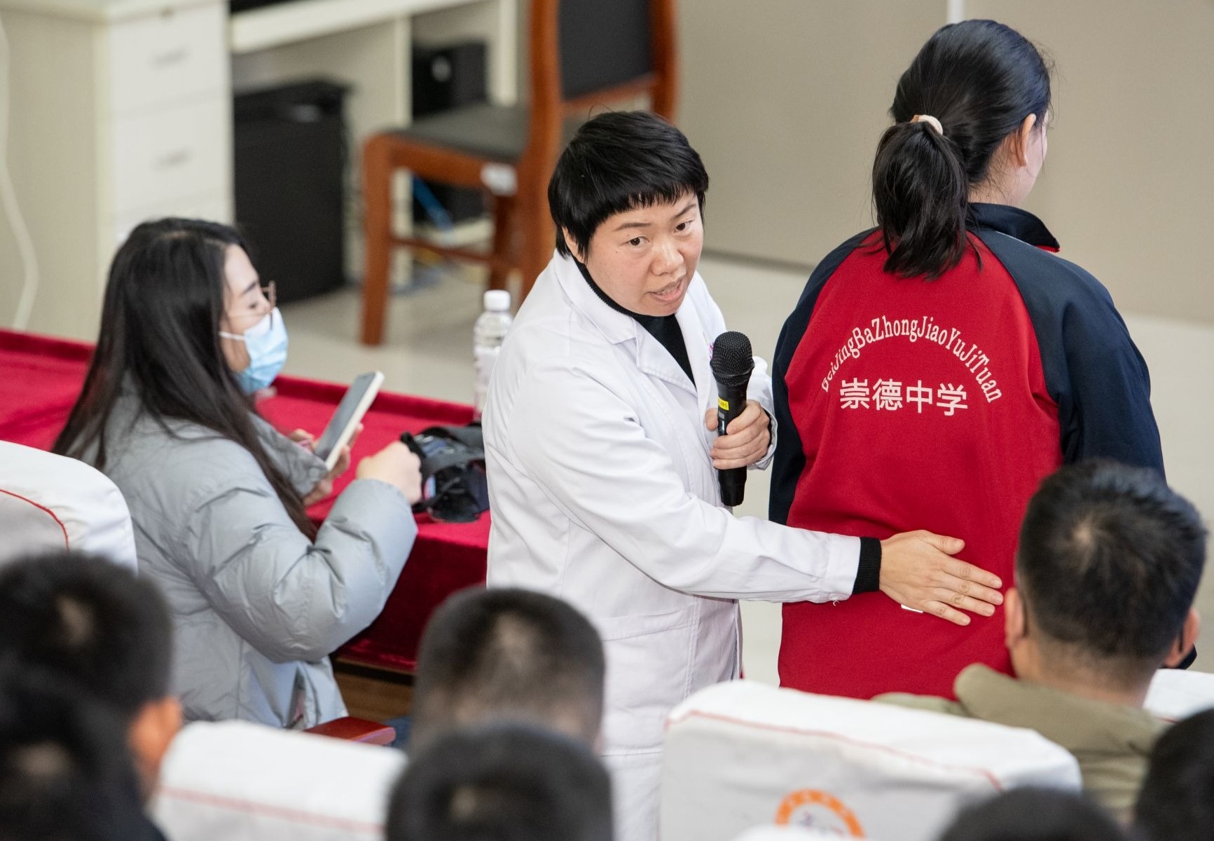 12月11日,首都儿科研究所德州儿童医学中心“医心护航・青苗计划”活动专场走进北京八中·崇德中学,为七、八年级150余名师生送上公益健康服务。此次活动分为健康讲座、现场答疑和互动体验三个环节。