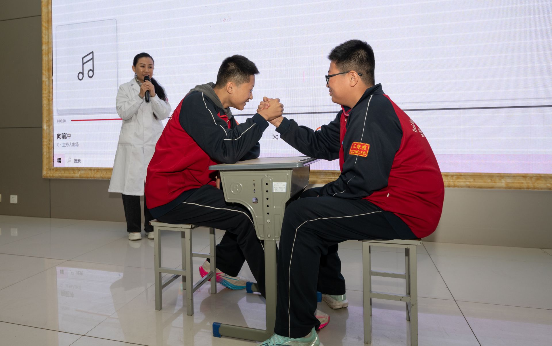 德州市妇幼保健院心理科副主任医师邢婕分享的《心晴有术,笃行逐梦——中学生心理护航课》则聚焦青少年心理健康。她通过一场掰手腕游戏,引导师生们正确认识压力、管理情绪,鼓励大家学会倾诉与求助,以积极乐观的心态面对成长路上的挑战。“适当的压力才是推动我们进步的动力。”七年级七班的张靖姚同学一边听一边认真记着笔记。