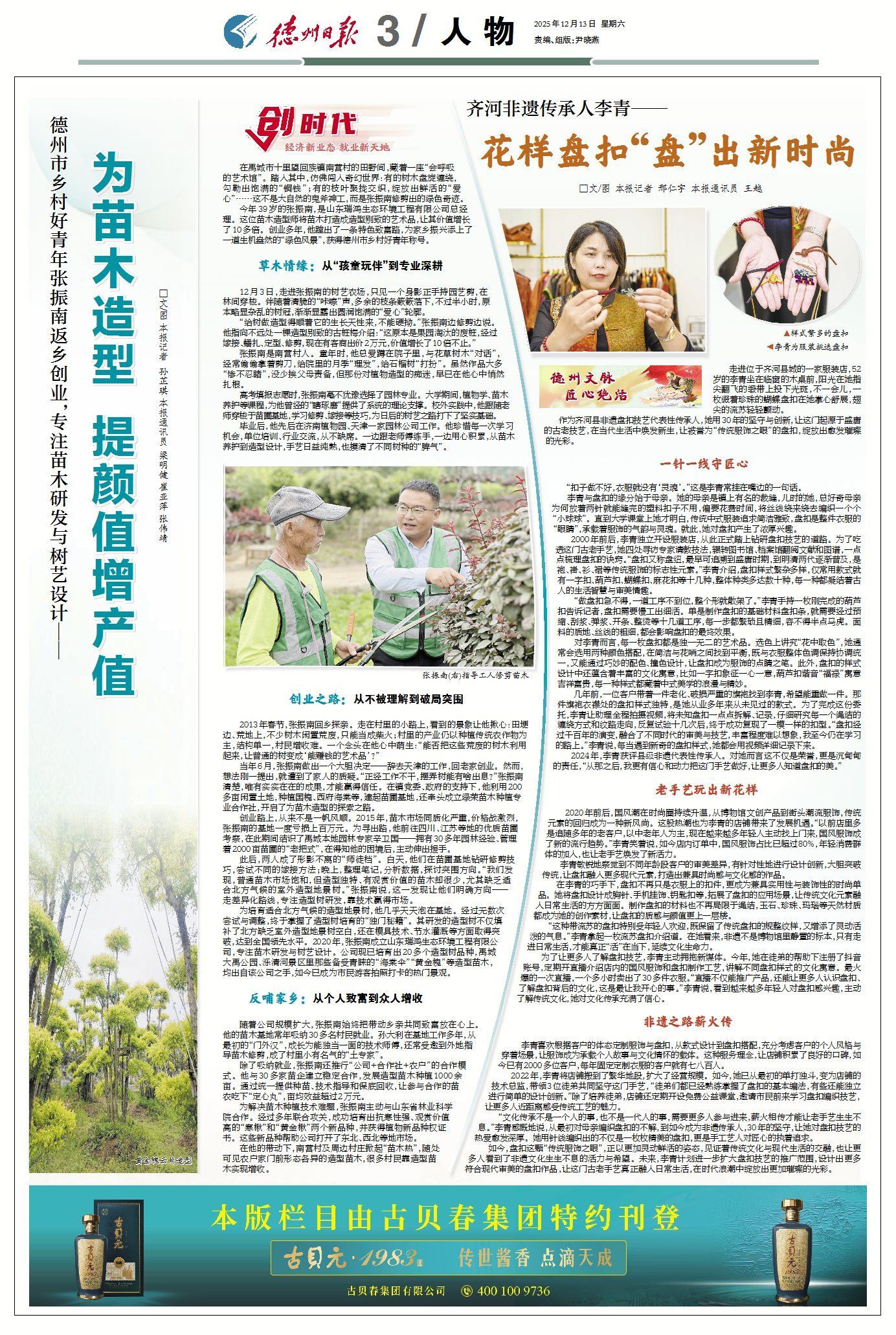今年39岁的张振南,是山东瑞鸿生态环境工程有限公司总经理。这位苗木造型师将苗木打造成造型别致的艺术品,让其价值增长了10多倍。创业多年,他蹚出了一条特色致富路,为家乡振兴添上了一道生机盎然的“绿色风景”,获得德州市乡村好青年称号。