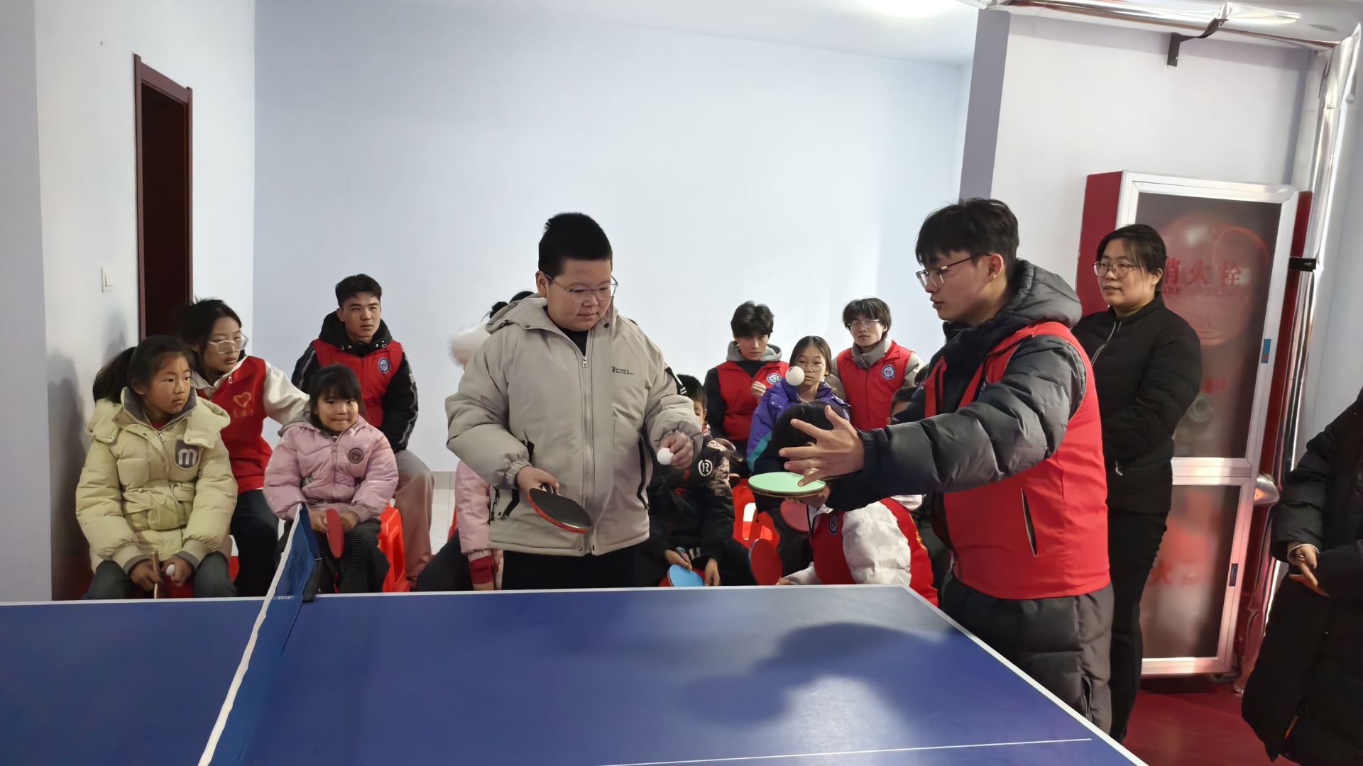 活动中,来自高校的大学生志愿者从握拍姿势、发球技巧、接球要领等基础环节入手,通过细致讲解和标准示范,分解动作要点,并耐心指导纠正。教学兼顾趣味性与实用性,穿插颠球比赛、简易对打等互动环节,让孩子们在轻松愉快的氛围中掌握技能、感受运动乐趣。