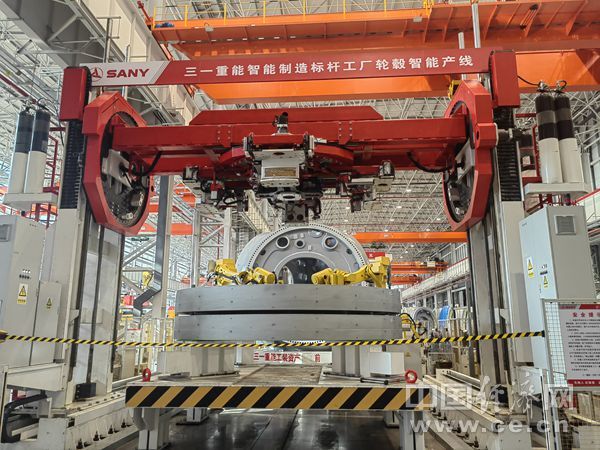 12月8日至10日,“牢记嘱托 逐梦深蓝”网络主题宣传活动采访团走进青岛、烟台、威海、日照等地。图为三一重能智能制造标杆工厂轮毂智能产线。(中国经济网记者 年巍/摄)