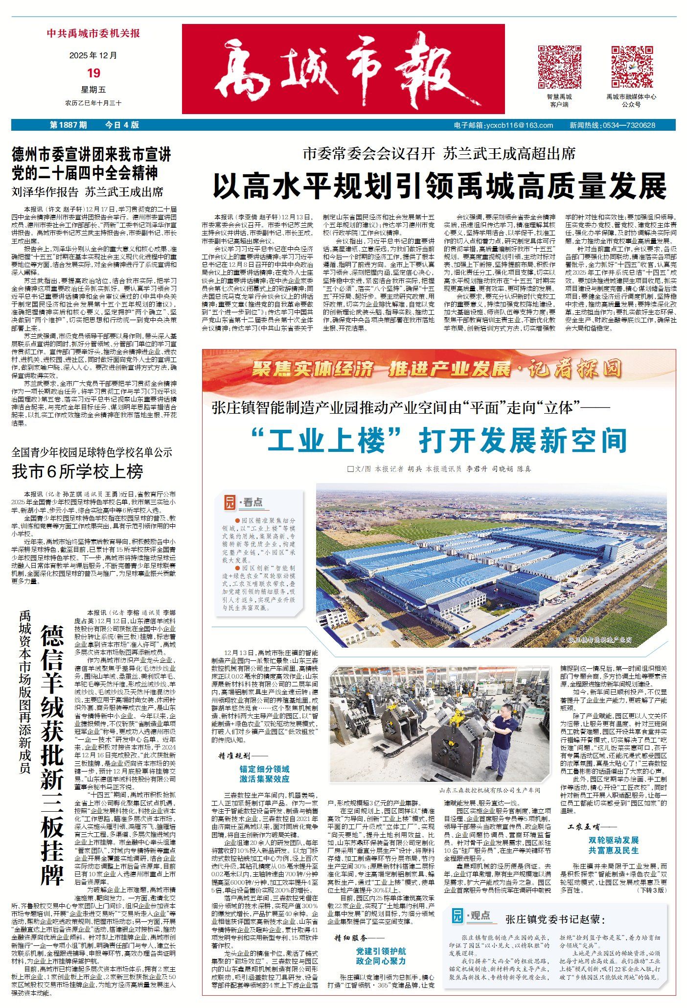 ▶聚焦实体经济 推进产业发展·记者探园 | 禹城张庄镇:“工业上楼” 打开发展新空间。(查看详情)