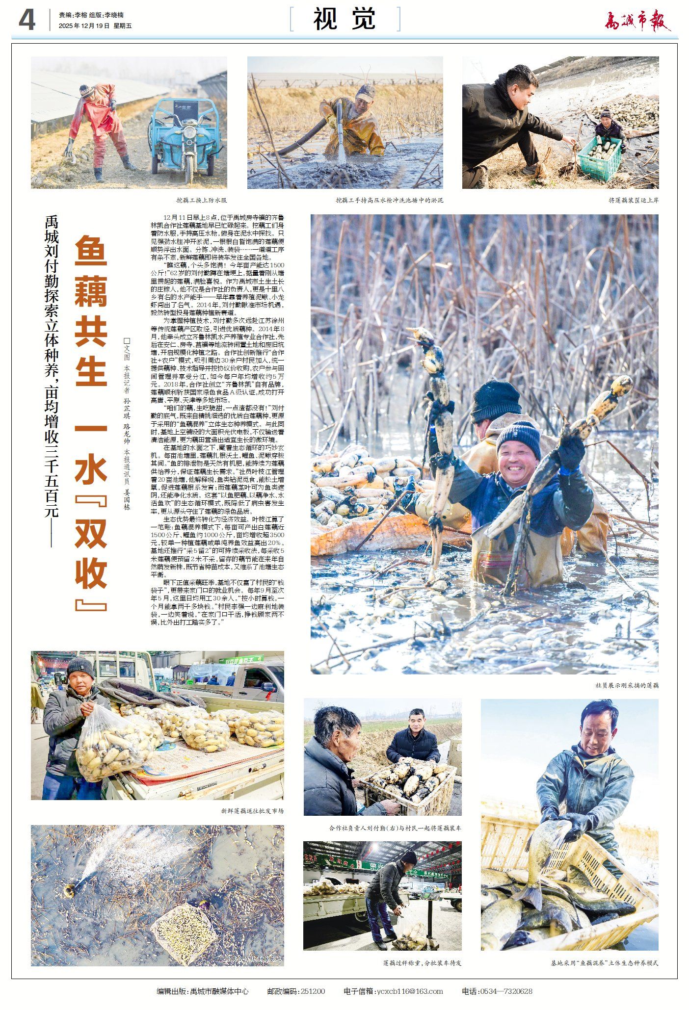 ▶视觉| 禹城刘付勤探索立体种养:鱼藕共生 一水“双收”。(查看详情)