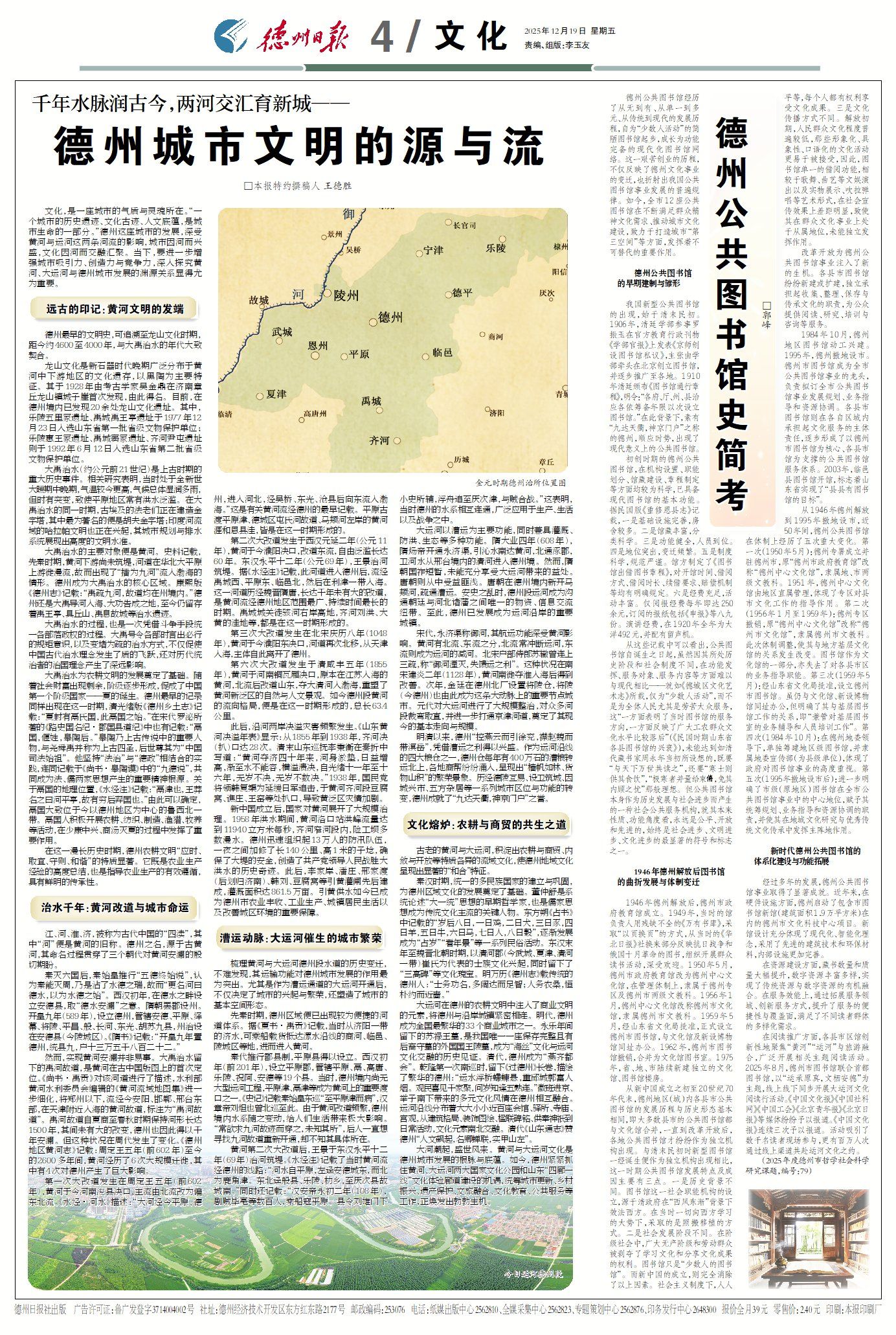 德州公共图书馆经历了从无到有、从单一到多元、从传统到现代的发展历程,自为“少数人活动”的简陋图书馆起步,成长为功能完备的现代化图书馆网络。这一艰苦创业的历程,不仅反映了德州文化事业的变迁,也折射出我国公共图书馆事业发展的普遍规律。如今,全市12座公共图书馆在不断满足群众精神文化需求、推动城市文化建设,致力于打造城市“第三空间”等方面,发挥着不可替代的重要作用。