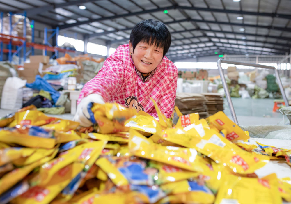 12月18日,在位于山东省乐陵市杨安镇的山东华畅食品有限公司,工作人员在分拣调料。 新华社发(王海楠摄)