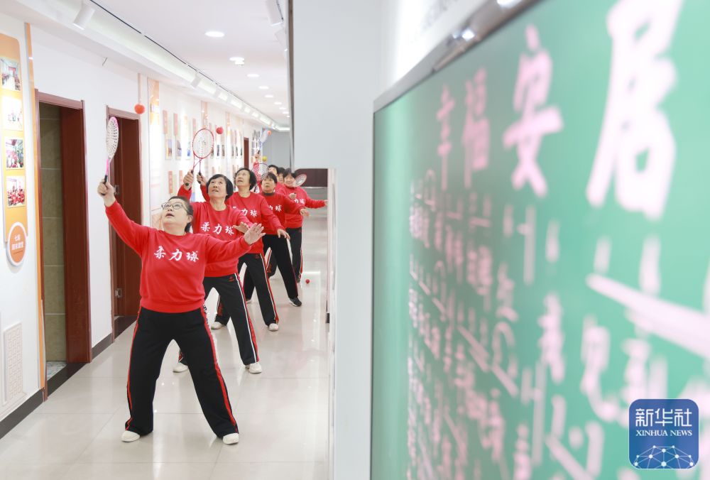 12月19日,在山东省乐陵市市中街道安居社区,老年健身队在练习柔力球。新华社发(许传宝摄)