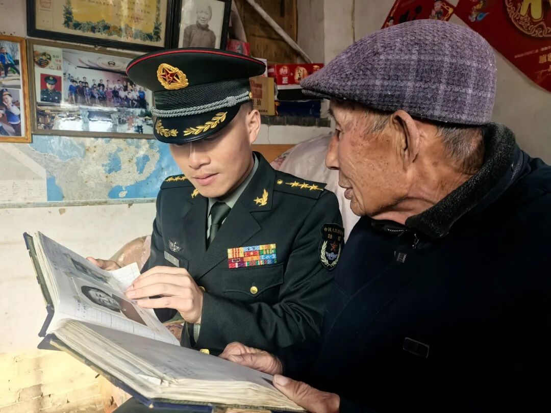 “快来看看连队的前辈们!”老人紧紧拉着王磊和班长陈飞的手走进屋,从旧衣柜中取出两本老相册。相册边缘磨损,内页泛黄,这是他珍藏半生的“传家宝”。