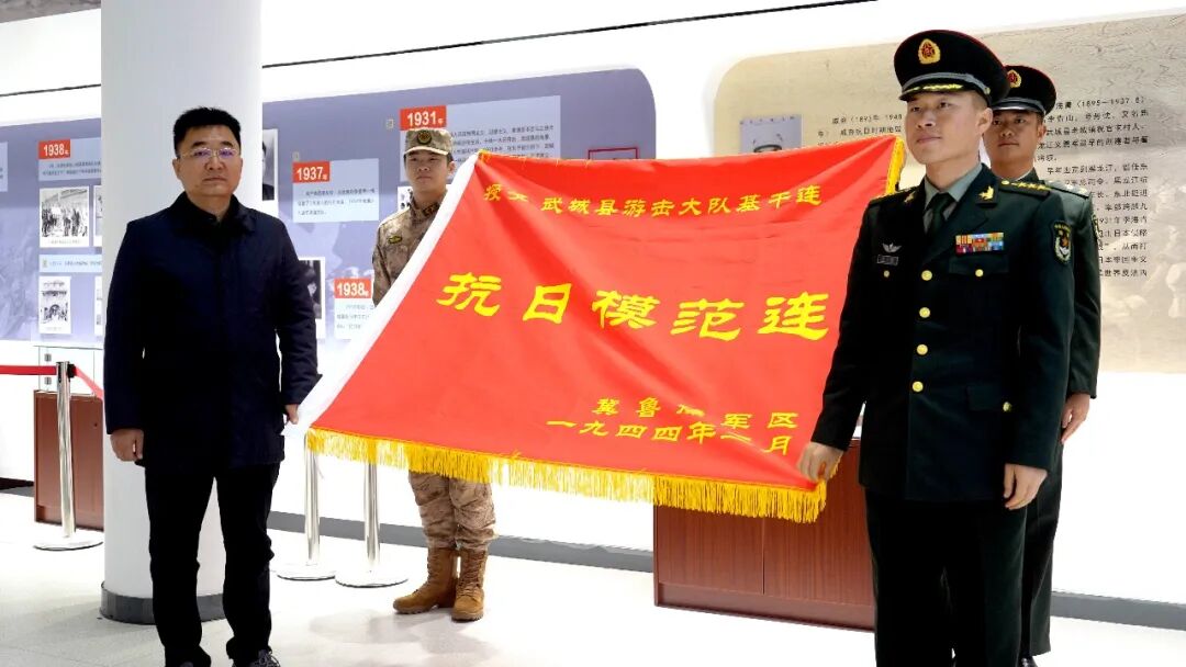 接过荣誉战旗,武城县档案馆负责人苗振利表示,将在档案馆开辟新的区域布展。连队的荣誉室也将更新,他们将增设专属展区,陈列部分老照片,戚烽连长的日记,水坡战斗、连队改编等史料。