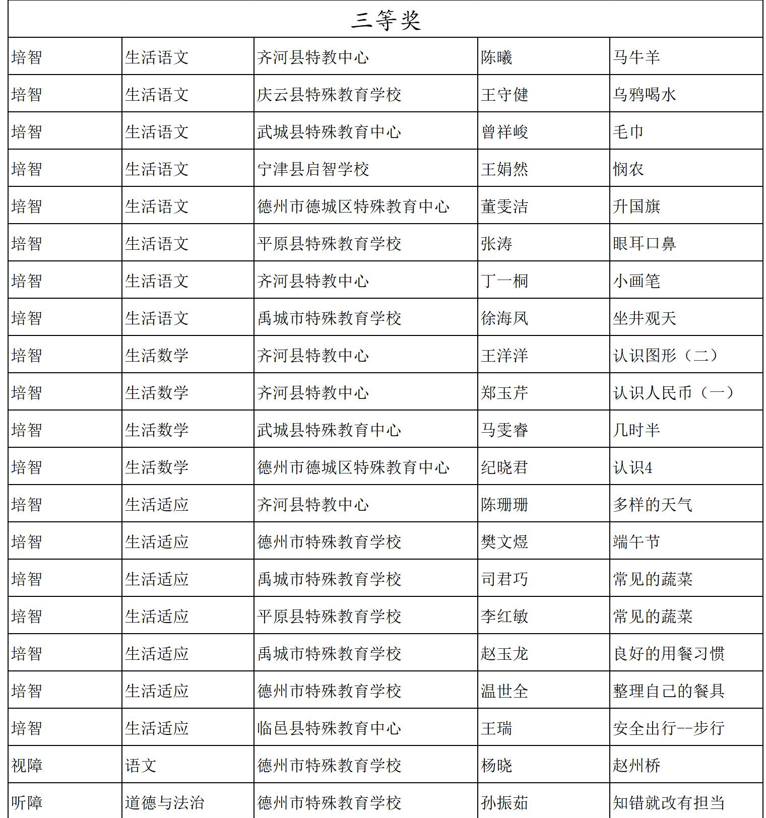 此次获奖的教学设计覆盖多类特殊教育领域,充分体现了我市特教教师在课程创新、个别化支持及康复教育结合等方面的深入探索与实践成果。