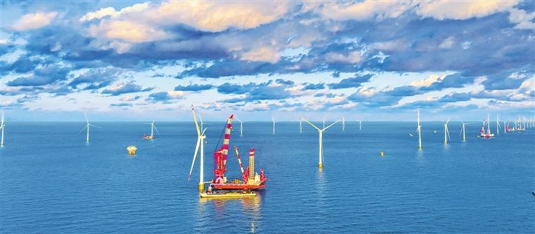 山东能源集团新能源集团有限公司投资建设的渤中A、B两个场址90万千瓦海上风电场。2022年12月底,该项目实现全容量并网发电。公振普摄(中经视觉)
