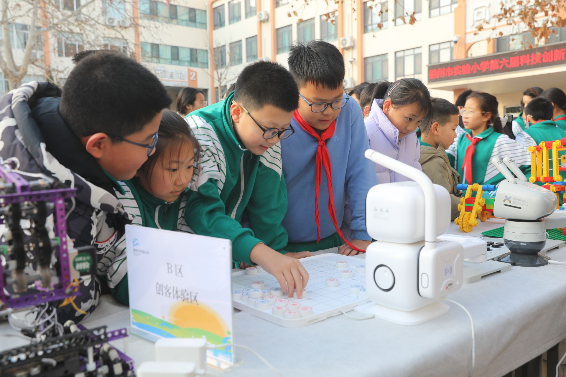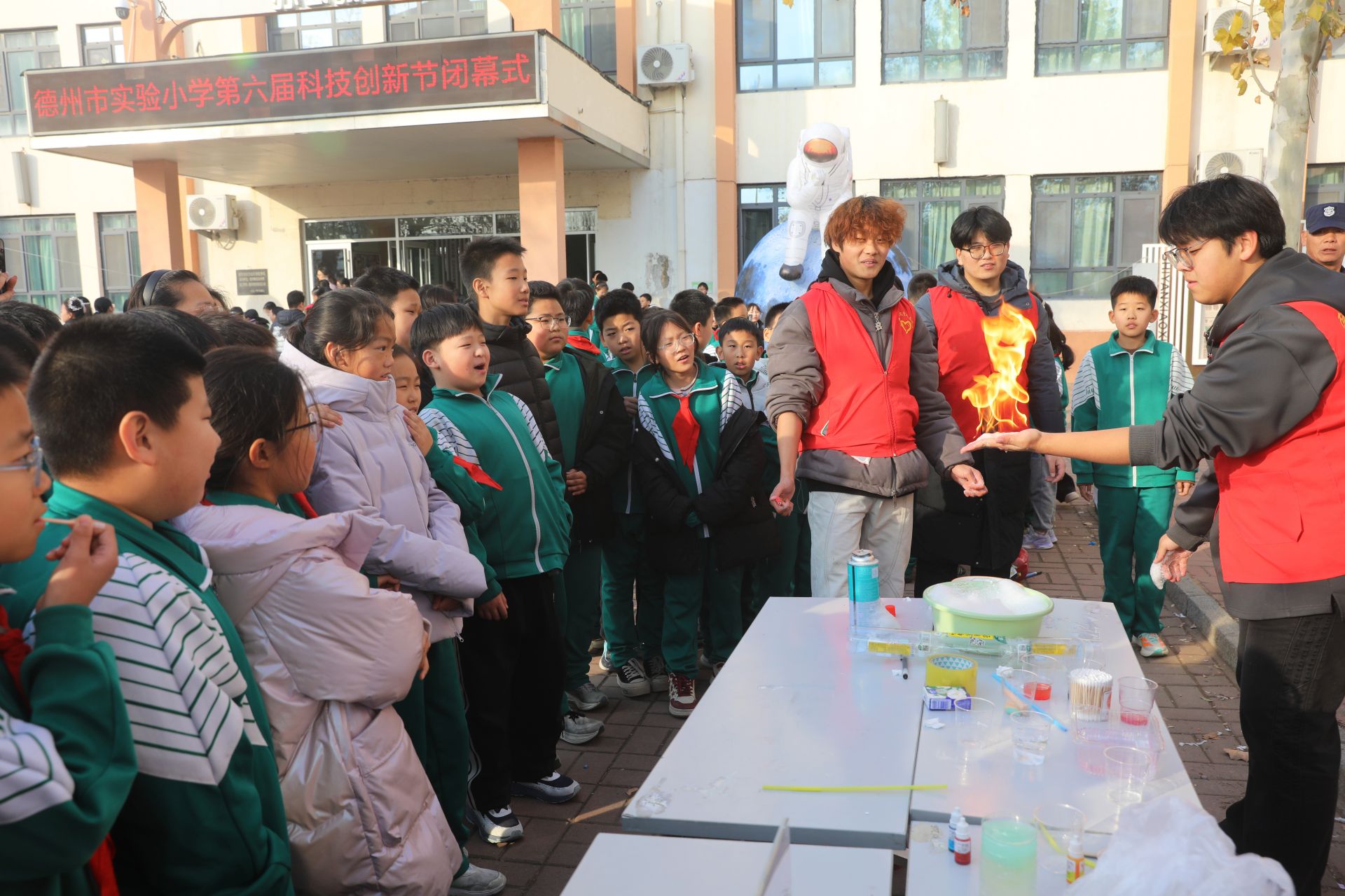12月26日下午,德州市实验小学为期两个月的第六届科技节圆满落下帷幕。本届科技节以“科创筑梦 逐光前行”为主题,通过成果展示、互动表演、实验体验等丰富多彩的活动形式,为全校师生搭建起沉浸式的科学探索与创意展示平台。