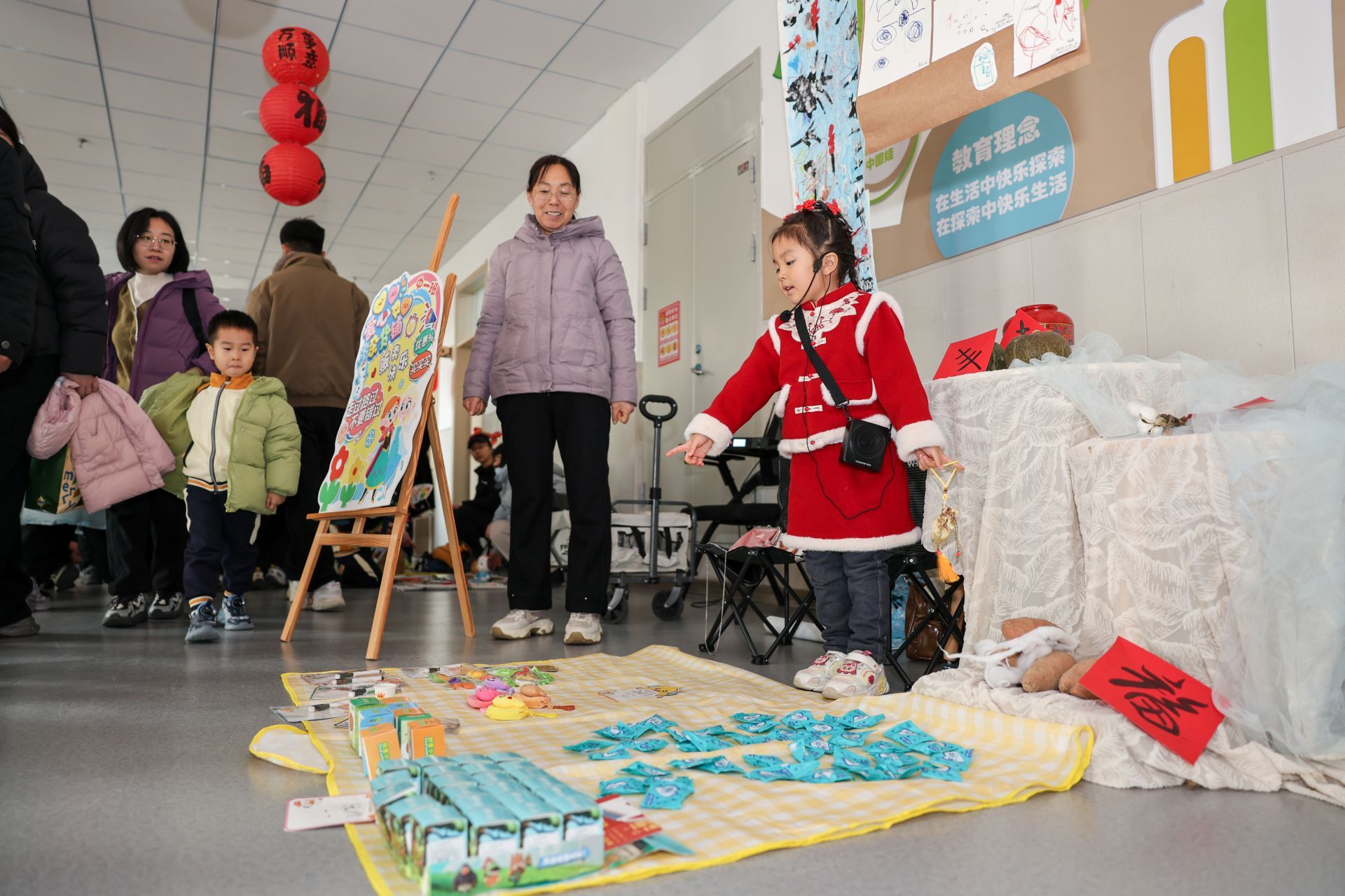 “运河集市”热闹非凡,小“摊主”们热情地推销着闲置玩具、绘本,讨价还价声、欢声笑语此起彼伏,俨然一个充满童趣的小市场。
