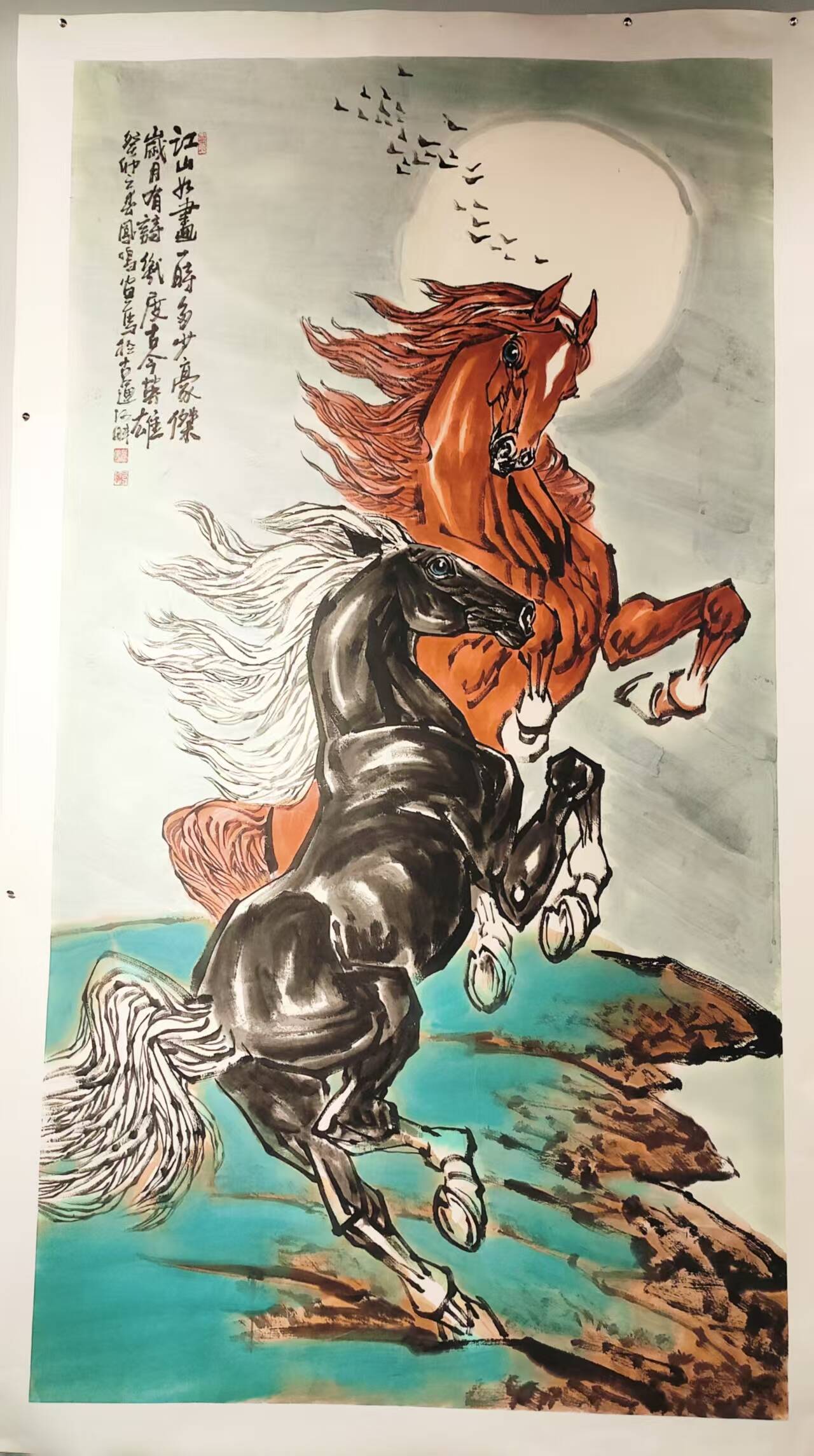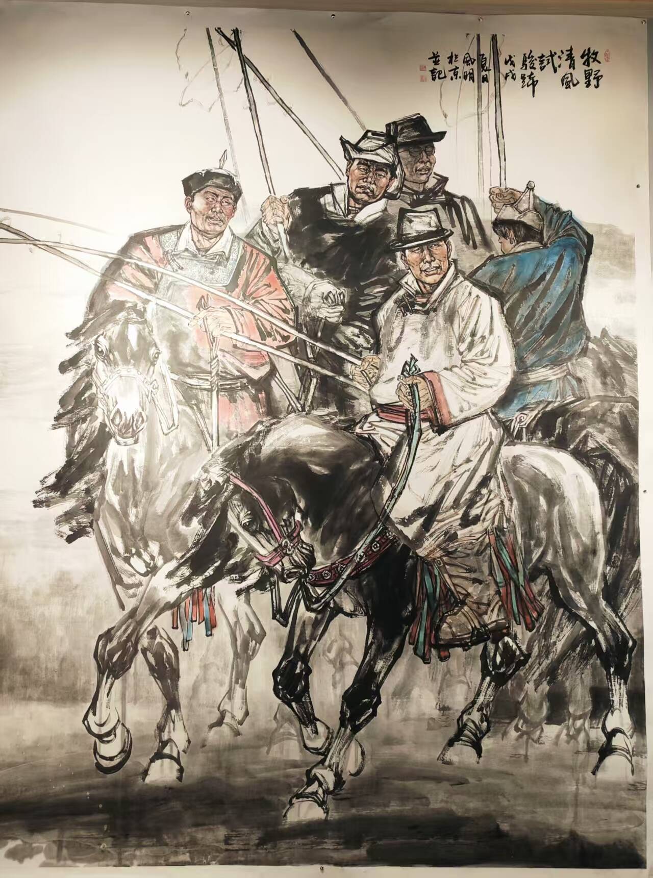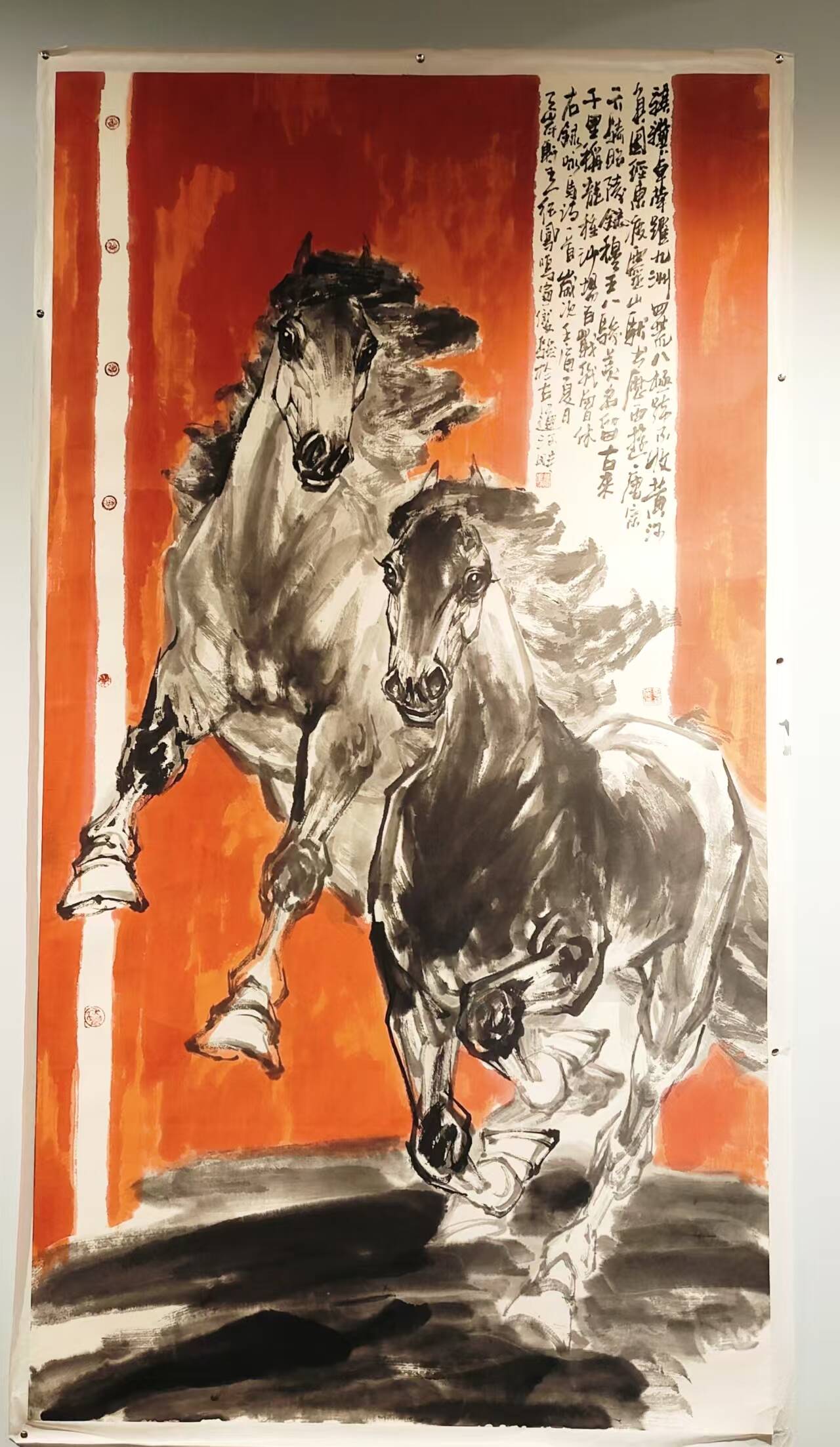 本次展览作品以马为创作主题。纪凤鸣的作品在造型、笔墨、气韵等方面都备受赞誉,笔下的马气势不凡,仿佛有风雷之声,给人以强烈的视觉冲击,展现出骏马的英姿飒爽和勃勃生机,让观者仿佛能感受到马的速度和力量。他在继承传统画马技法的基础上,将水墨人物语言和画马技法整合贯通,形成了自己独特的艺术风格,使马的形象更具个性和内涵。