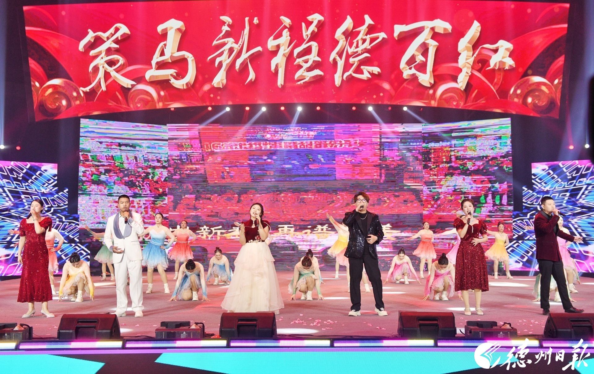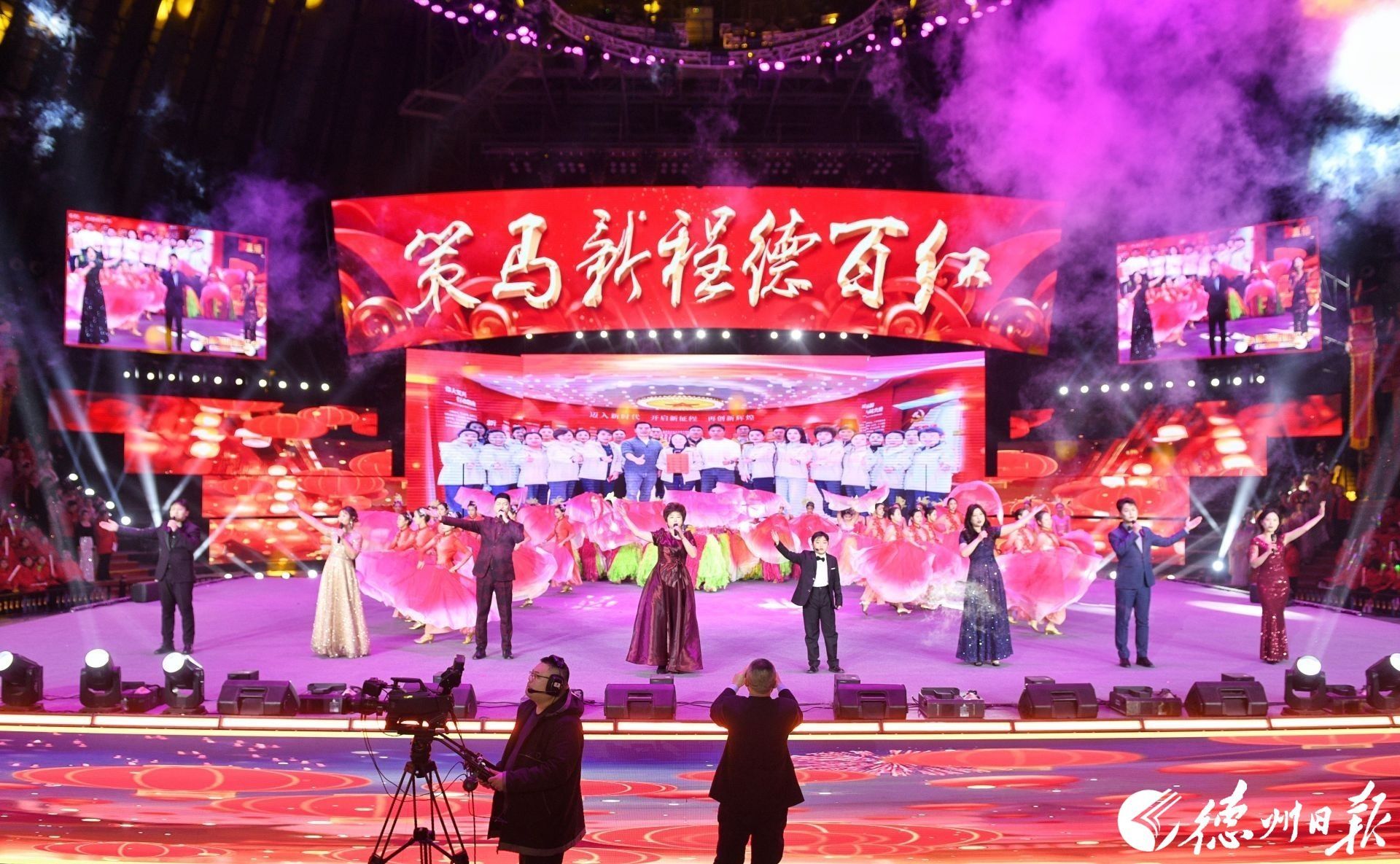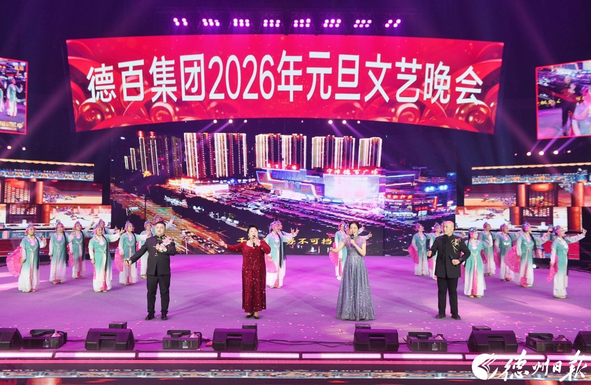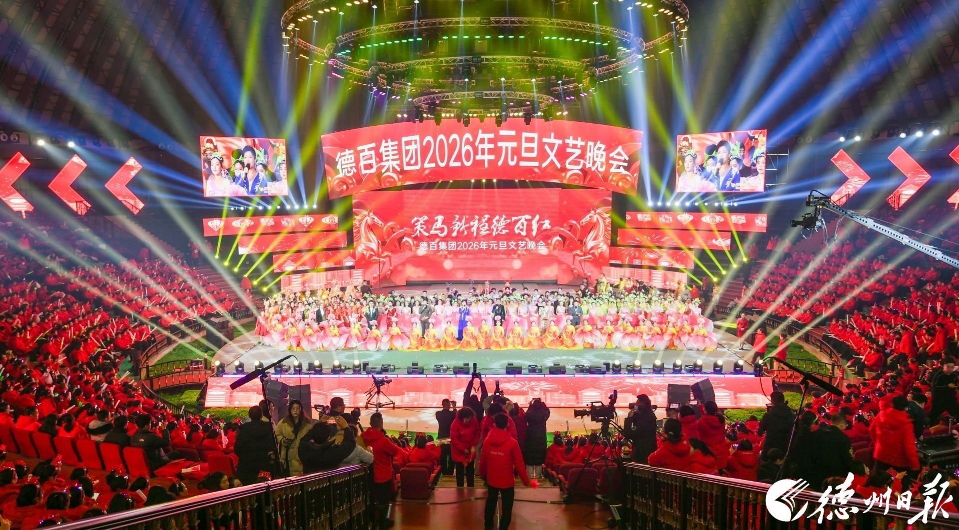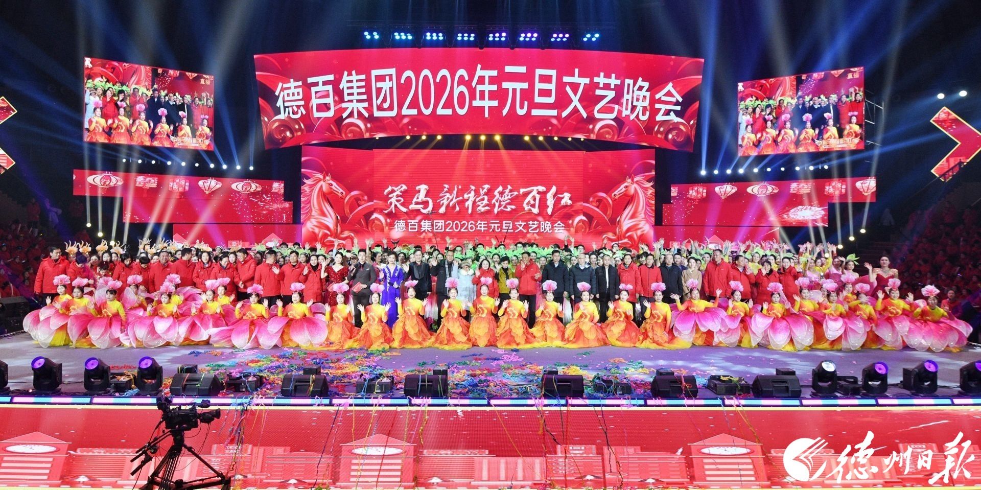 妙舞欢歌腾盛世,砥砺奋进新征程。12月30日晚,德百集团2026年“策马新程德百红”元旦文艺晚会在宁津德百杂技蟋蟀谷举行。集团干部职工、厂商客户代表等3000余人欢聚一堂、共迎新年。