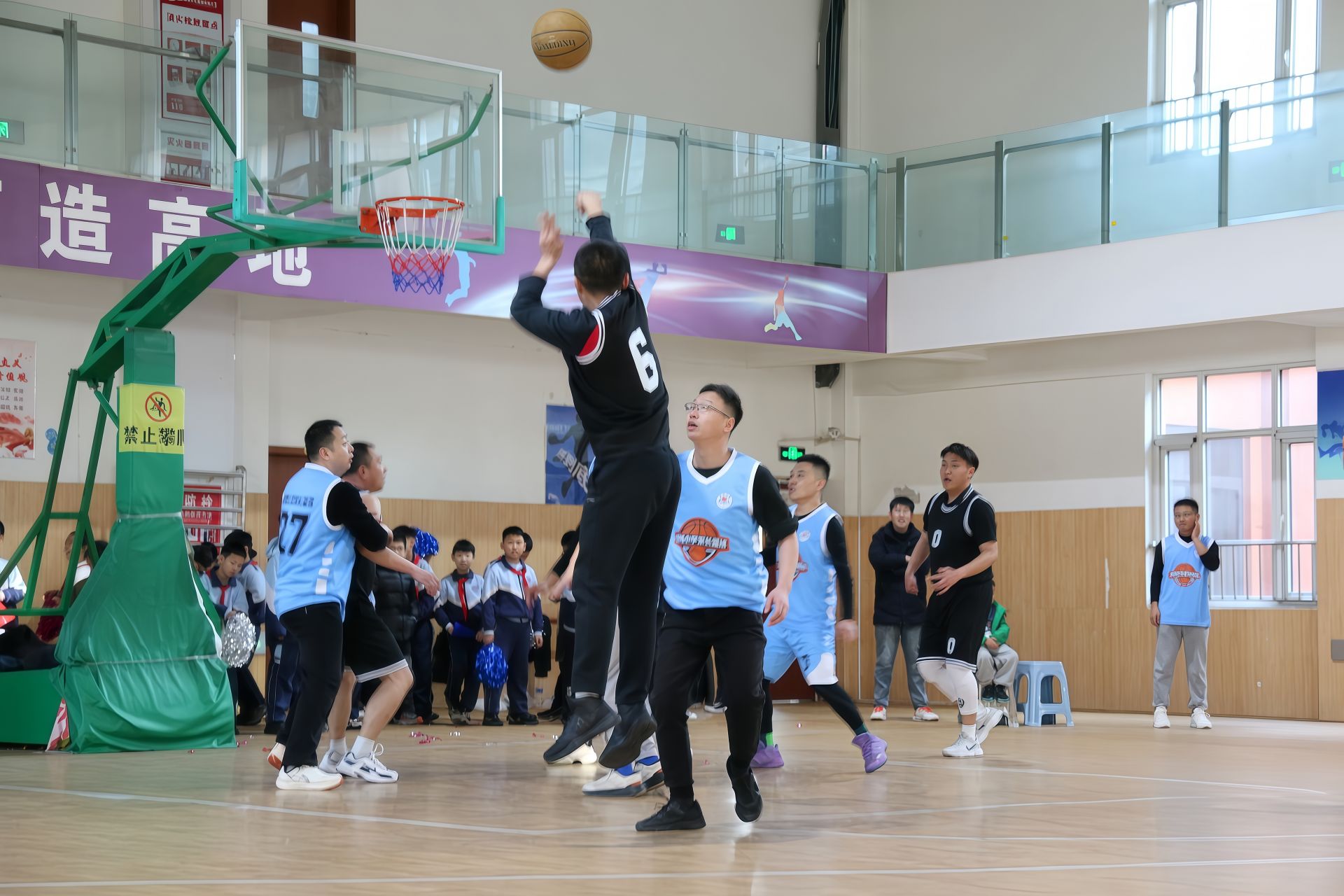 比赛哨声响起后,双方队员迅速进入状态。教师队配合默契,攻防有序;家长队也毫不示弱,凭借充沛的体力和灵活的走位积极拼抢。赛场上,传球、突破、投篮等动作行云流水。队员们在赛场上挥洒汗水,既展现了顽强拼搏的体育精神,也传递着家校同心的和谐氛围。
