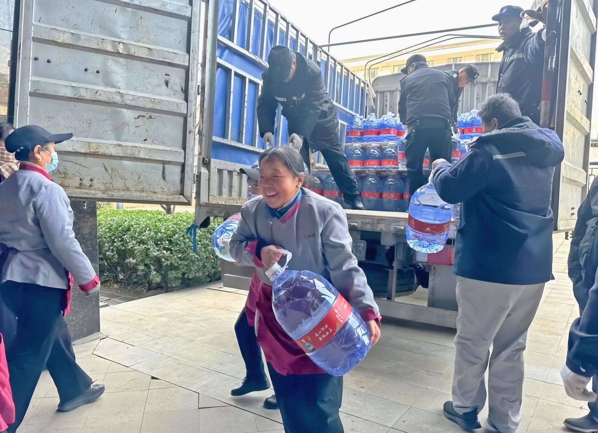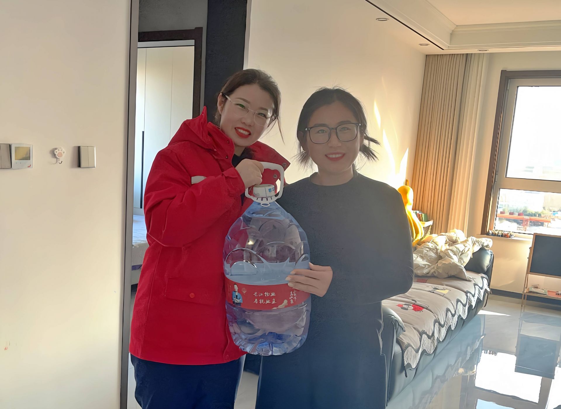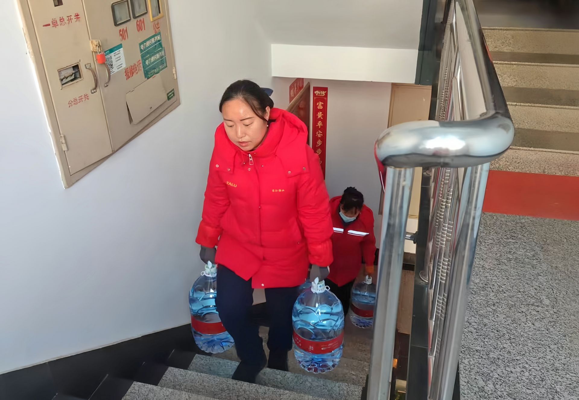 元旦佳节来临之际,长江物业开展暖冬活动,定制5万余桶泰山山泉水为业主逐户上门派送。