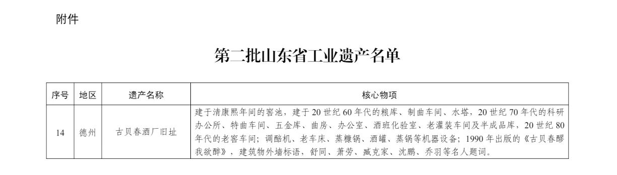 2025年12月29日,山东省工信厅发布通知,公布了第二批山东省工业遗产认定名单,古贝春集团有限公司发祥地“古贝春酒厂旧址”成功入选。