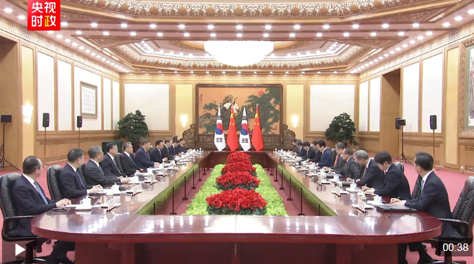 独家视频丨习近平:中韩应当坚定站在历史正确一边 作出正确战略选择 2026-01-05 21:21 央视新闻客户端 0 (点击图片查看视频) 1月5日下午,国家主席习近平在北京人民大会堂同来华进行国事访问的韩国总统李在明举行会谈。 习近平指出,当前世界百年变局加速演进,国际形势更加变乱交织。中韩在维护地区和平、促进全球发展方面肩负重要责任,有广泛利益交集,应当坚定站在历史正确一边,作出正确战略选择。