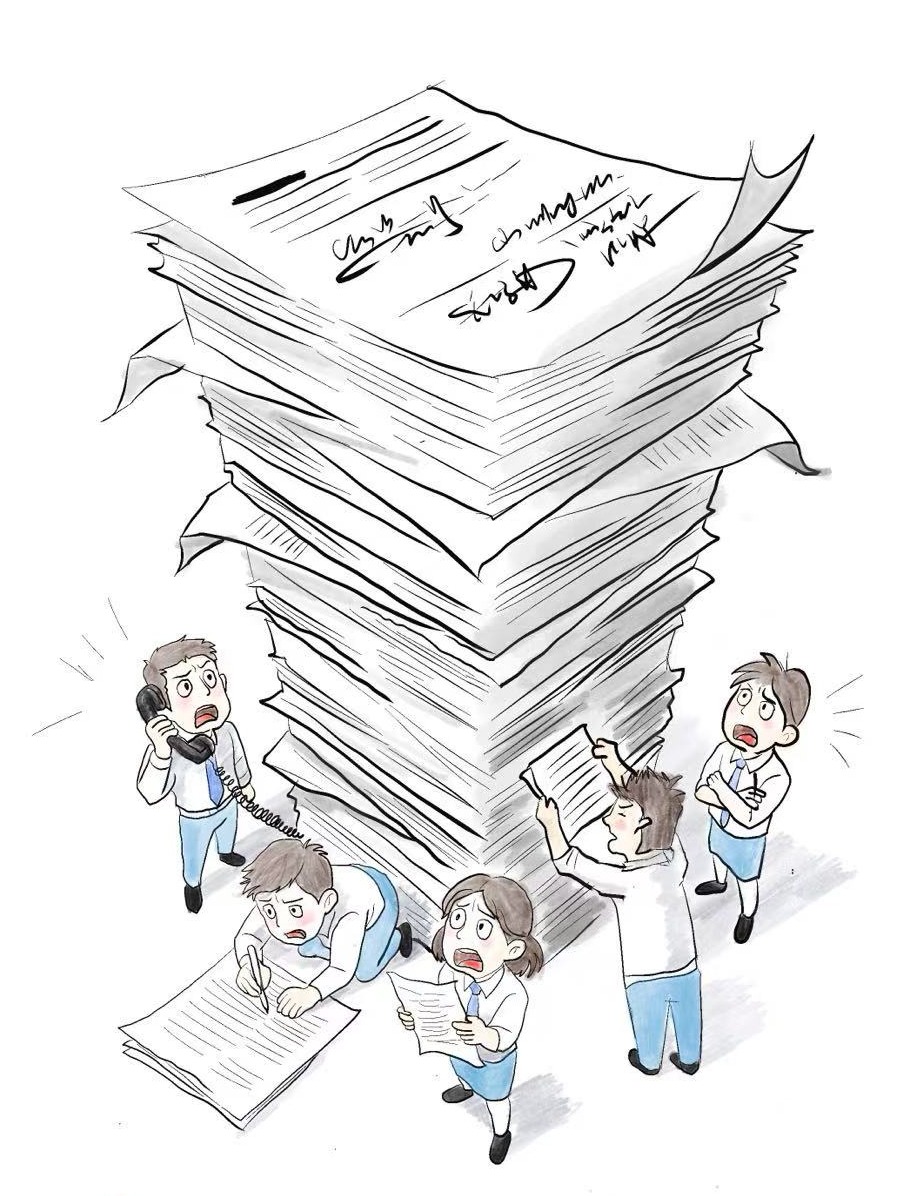 有的部门将“发文”等同于“落实”,将“材料厚度”等同于“工作力度”,层层加码的配套文件、琳琅满目的各类台账,不仅耗费基层干部大量时间和精力,更催生了“纸面落实”“材料政绩”的怪象。上级或许只需动动嘴、发发文,基层却要跑断腿、写断手,政策在文山会海中空转,服务群众的“最后一公里”在“案牍之劳”中梗阻。