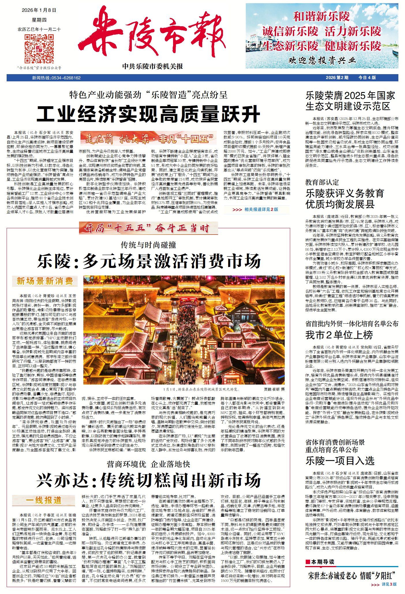 乐陵市新闻周报(1月2日至1月8日) ©原创 2026-01-08 07:37 0 ▶乐陵:多元场景激活消费市场(点击查看详情) ▶开局“十五五” 奋斗正当时 | 乐陵兴亦达食品:传统切糕闯出新市场(点击查看详情) ▶工业经济质效齐升澎湃新动能|乐陵“十四五”经济社会发展系列综述之三(点击查看详情) ▶乐陵扎实推进农村危房改造工程(点击查看详情) ▶乐陵“不陷城”的来历(点击查看详情) 德州日报新媒体出品编辑|于春芝审核|胥爱珍 终审|尹滨