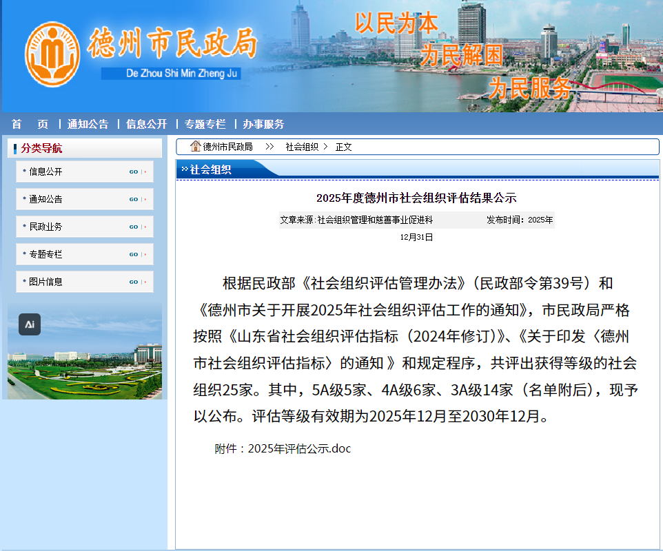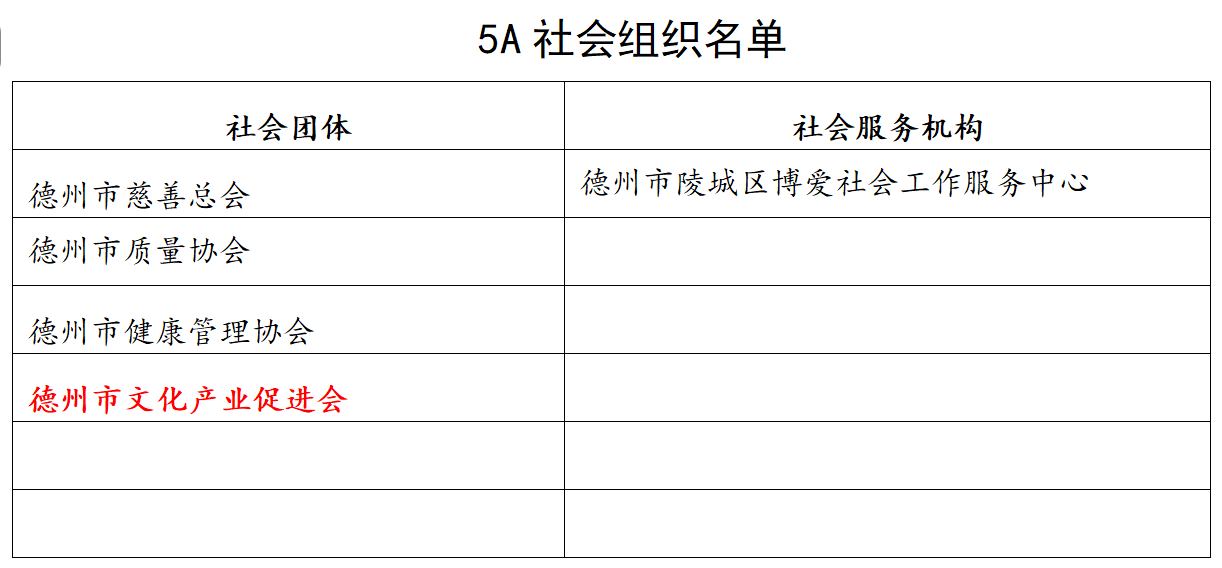 近日,德州市文化产业促进会在德州市民政局2025年社会组织等级评估复评中顺利通过考核,成功蝉联“5A级社会组织”荣誉称号。