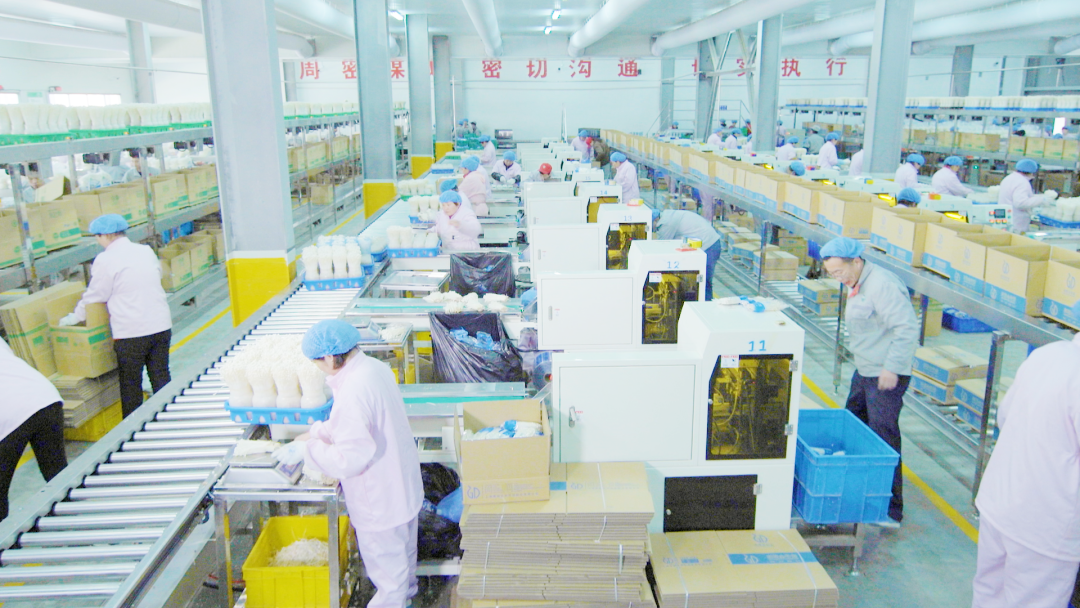 近日,走进位于抬头寺镇的山东雪榕生物科技有限公司生产车间,一派繁忙。刚采收的鲜嫩金针菇在自动化流水线上快速分拣、包装,即将发往全国市场。这里是目前全国最大的单体食用菌生产基地,日产约450吨。