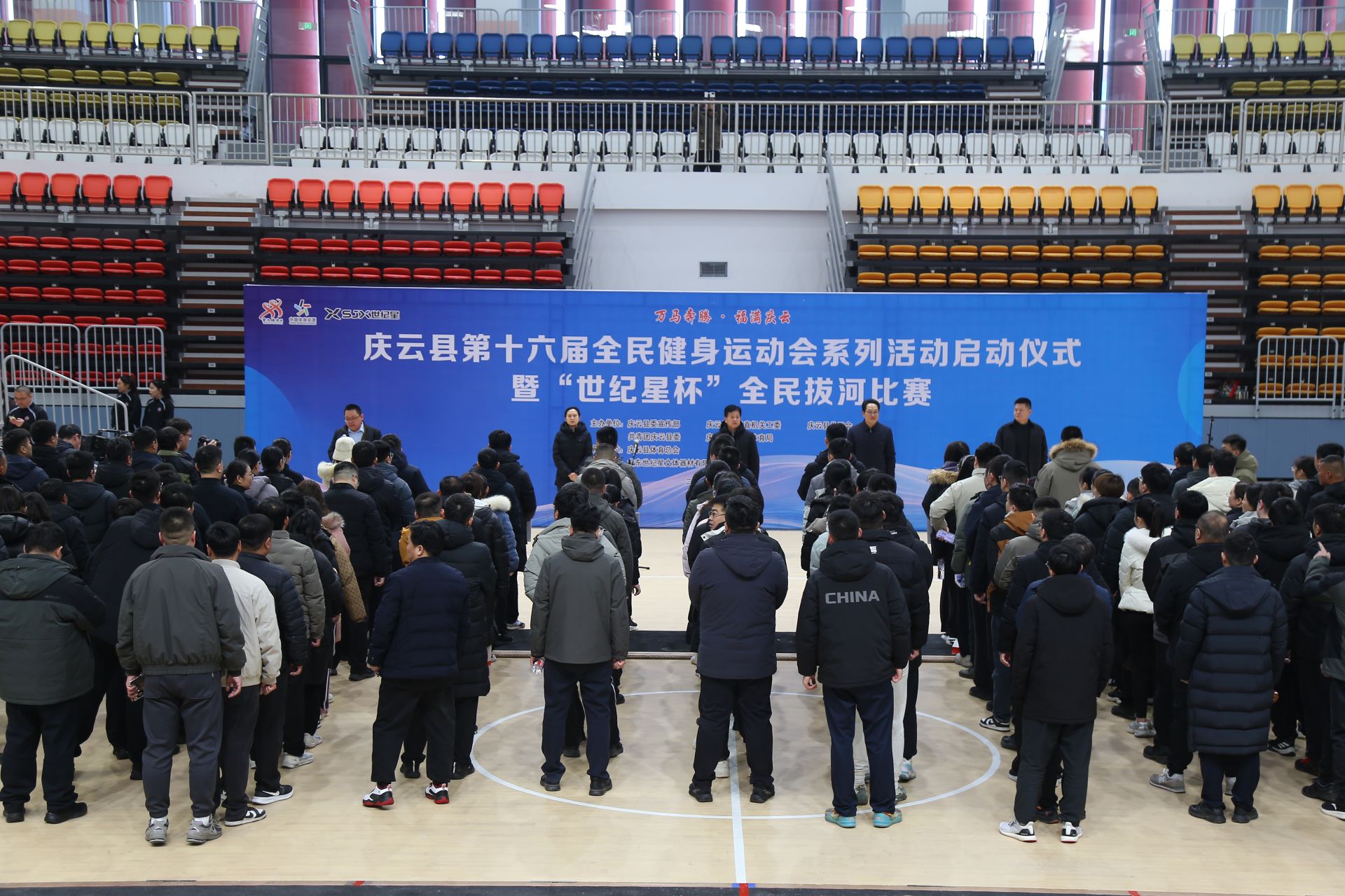 冬日拔河,激情开赛。1月10日,庆云县文体中心场馆内,第十六届全民健身运动会系列活动启动仪式暨“世纪星杯”全民拔河比赛举办。活动旨在以体育赛事和群众健身活动为依托,发扬团结协作精神,营造凝聚力量、鼓舞士气,形成干事合力的浓厚氛围。