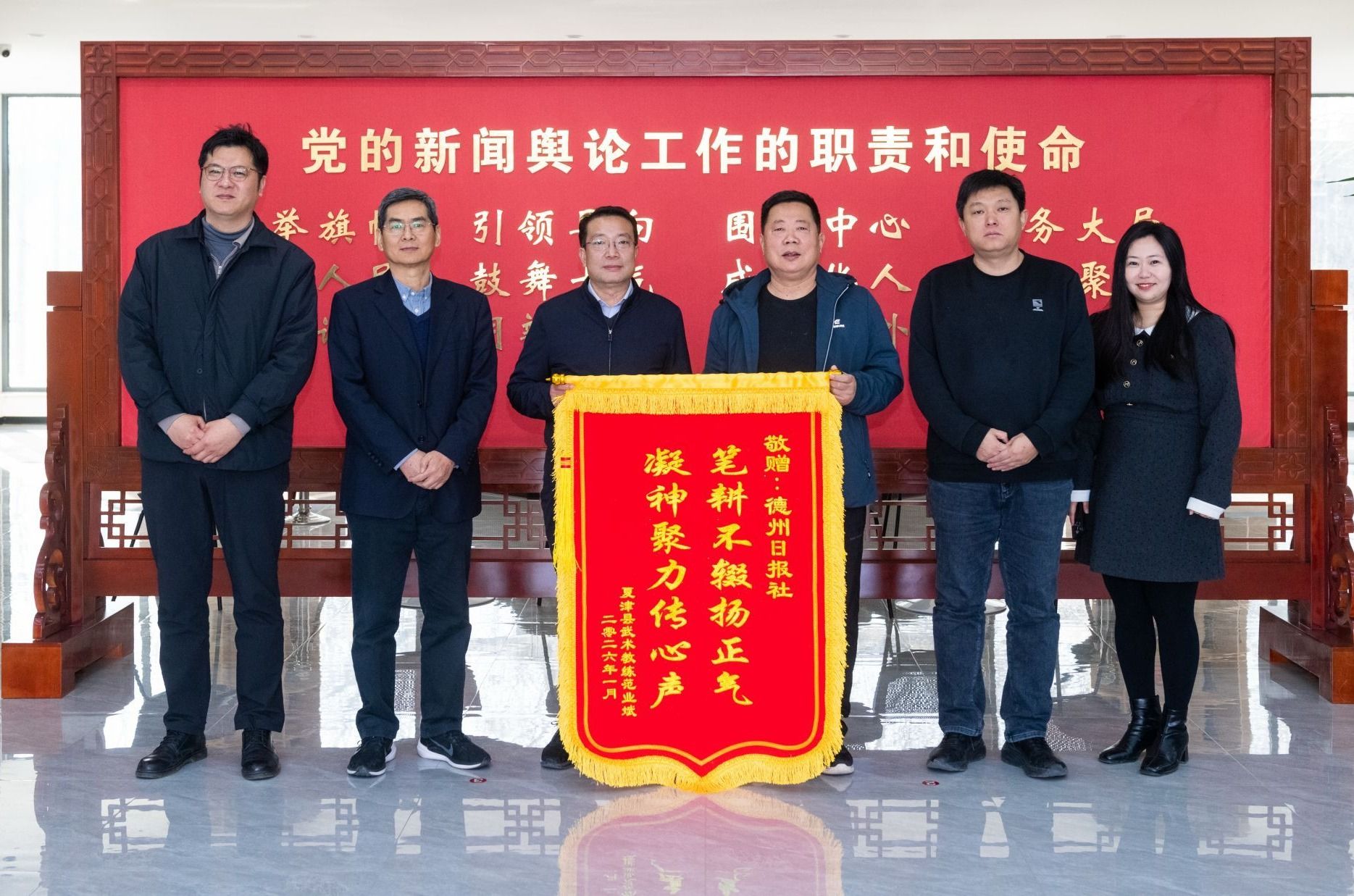 “感谢报社对我这个基层一线武术教练的关注,你们的报道让我感到做的这点事儿有了更高的价值。”近日,夏津县少儿竞技体育学校教练员范业斌来到德州日报社,将一面写有“笔耕不辍扬正气,凝神聚力传心声”的锦旗交到德州日报社有关负责人手中,表达对报社开展正能量报道的诚挚感谢。