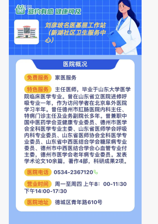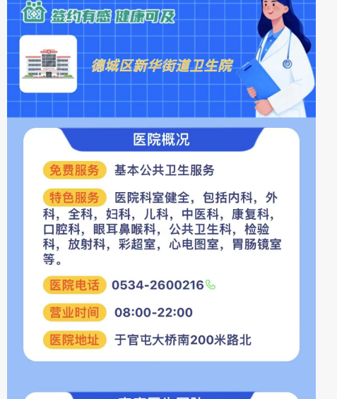 点击详情,查看机构信息及家庭医生团队信息,了解家医团队擅长的特色诊疗服务内容等信息。