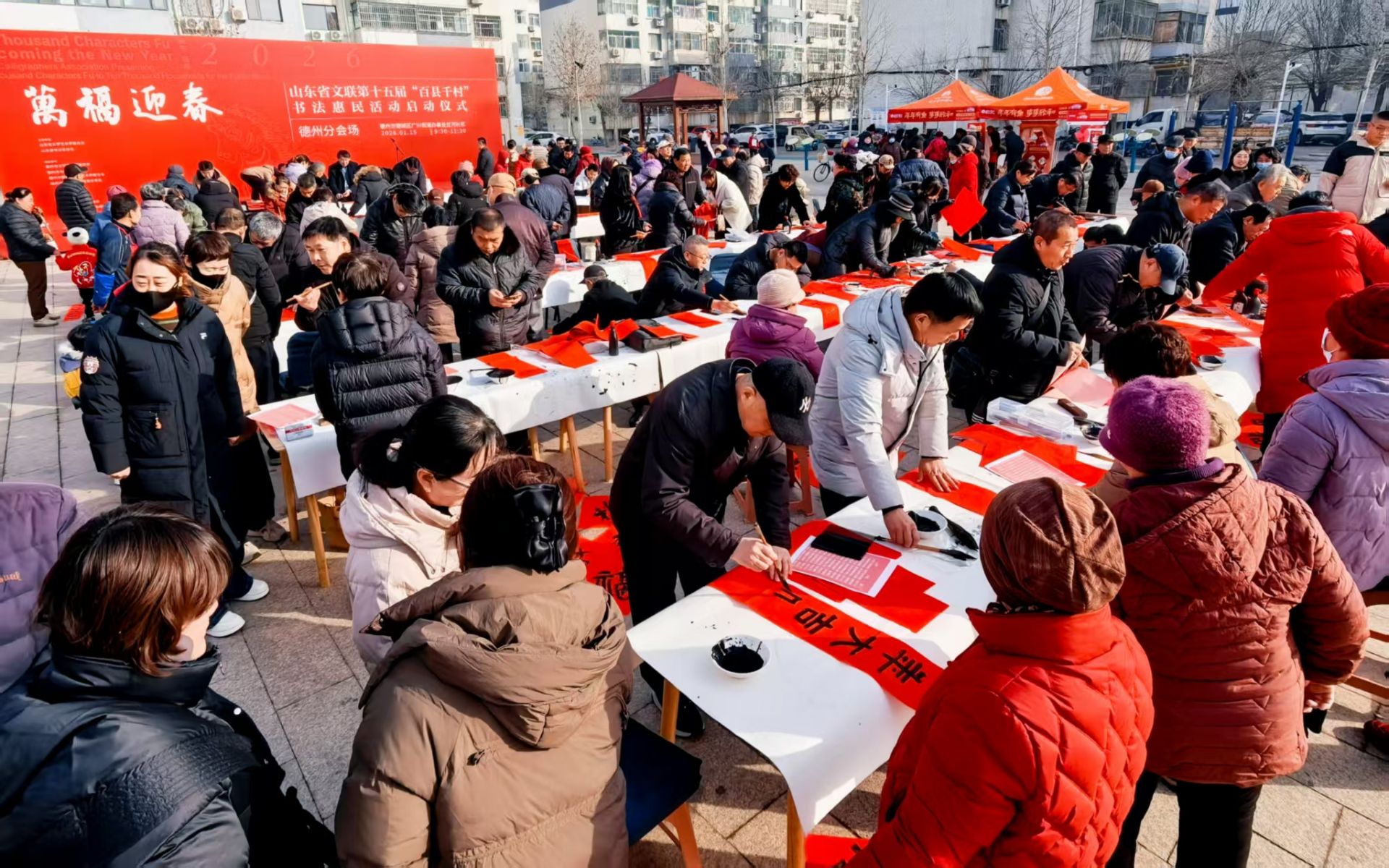 1月15日,万福迎春——山东省文联新时代文明实践第十五届“百县千村”书法惠民活动(德州分会场)在德城区岔河社区举行。