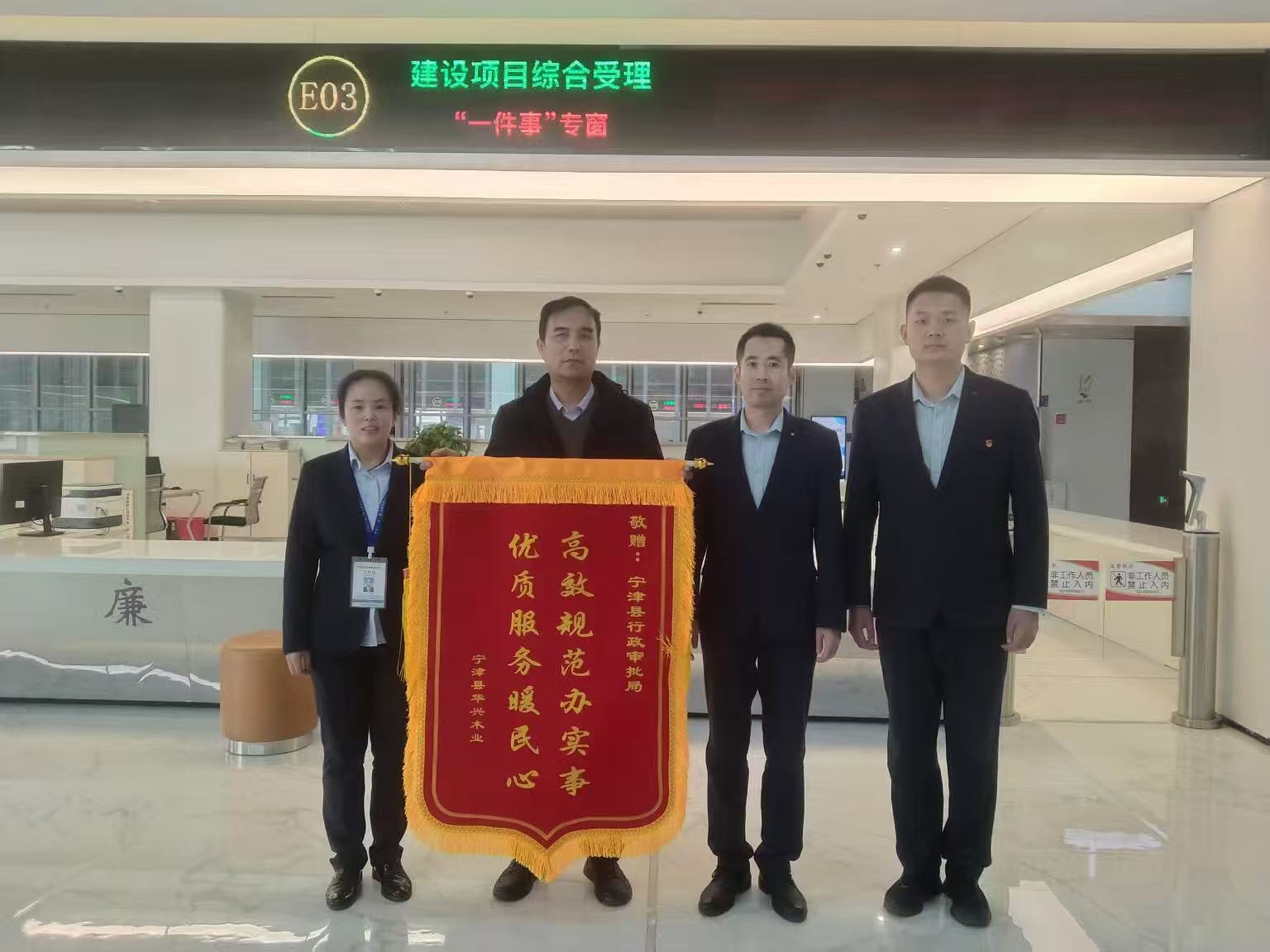“真是太感谢了!原本以为要跑断腿、耗数月的项目手续,在你们的全程指导下,短短15天就全部办结,为我们项目抢工期赢得了宝贵时间!”近日,宁津县华兴木业项目负责人武先生带着一面印着“高效规范办实事,优质服务暖民心”的锦旗,来到宁津县政务服务中心。这温暖的一幕,正是宁津县行政审批服务局用精准服务化解企业办事难题和办事之忧的真实写照。