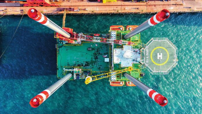 在青岛海西湾船舶与海洋工 程产业基地,海上作业平台在建 设中(2025 年 12 月 24 日摄) 新华社发(俞方平摄)