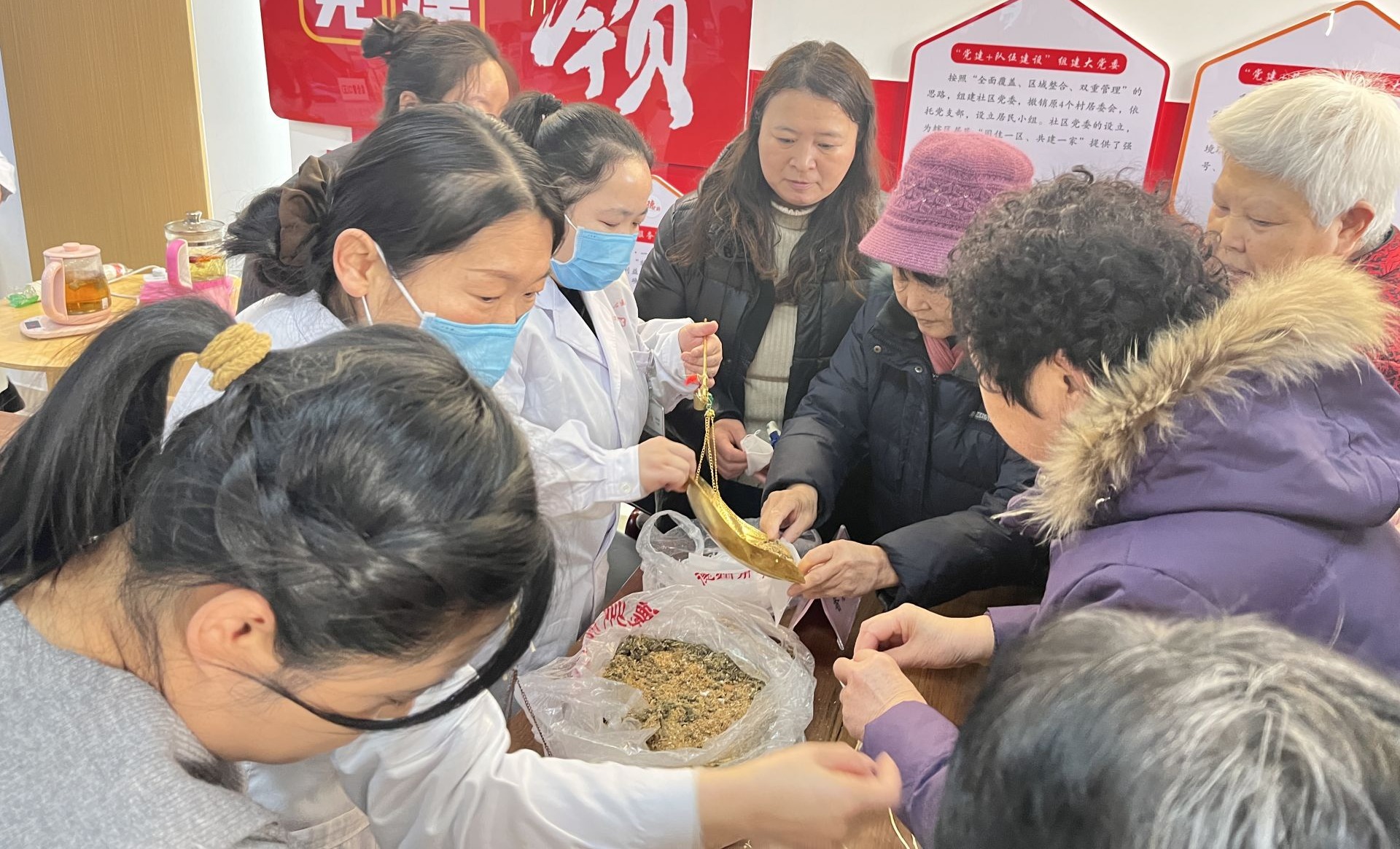 香囊制作体验区里,浓郁的药香扑面而来。居民们在工作人员指导下装填缝制,一个个防流感、助安睡的香囊便很快成型。传统功法教学区里,八段锦表演刚柔并济,一招一式尽显传统功法韵味,吸引了不少居民跟着学练。中医药产品展示区里,艾草制品整齐陈列,工作人员现场科普艾灸驱寒知识,干货满满。