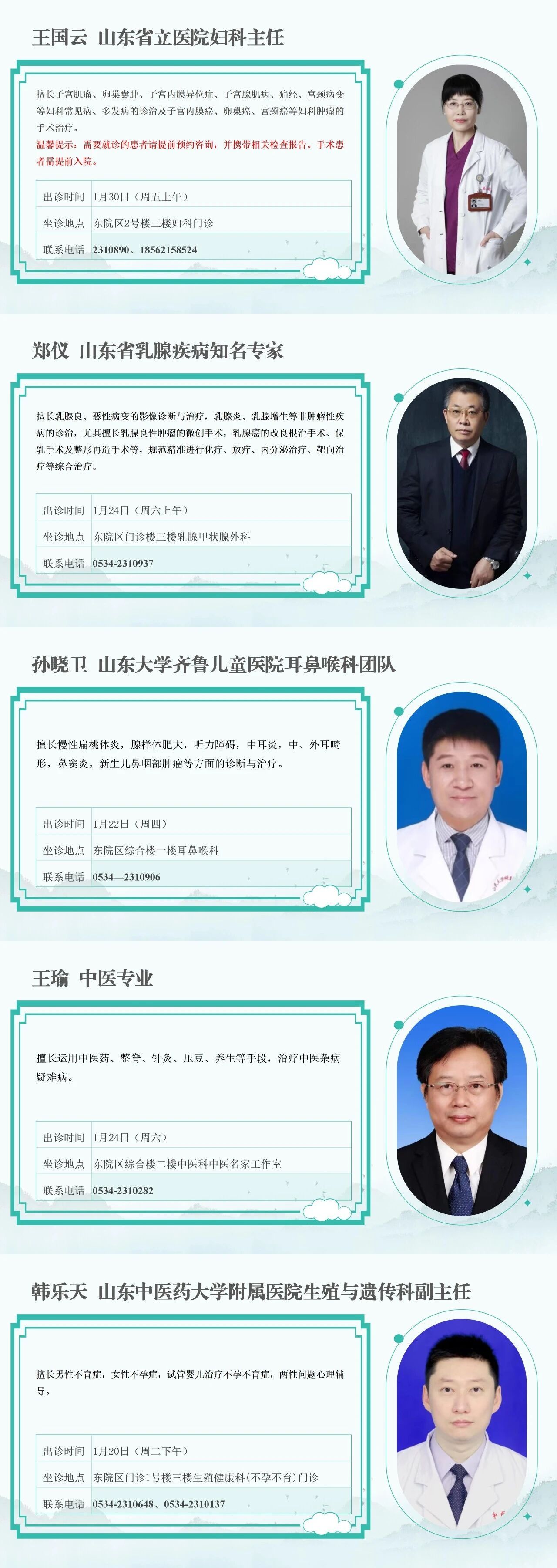 为让广大患者在“家门口”就能享受优质医疗资源,德州市妇幼保健院特邀国家级、省级知名专家坐诊妇科、乳腺外科、耳鼻喉科、中医科、生殖与遗传科。患者可根据自身需求,选择适合的专家就诊。