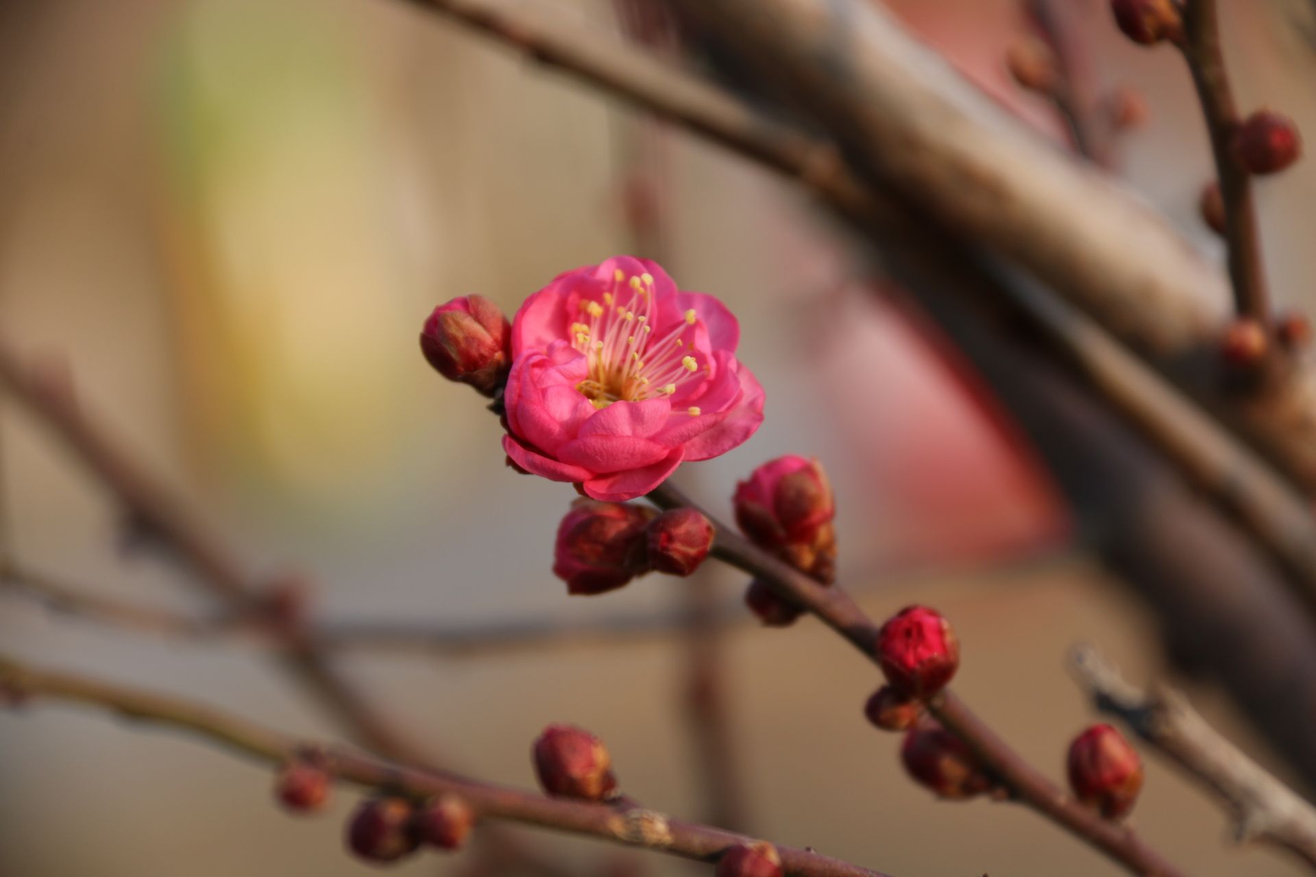 梅花:八重寒红