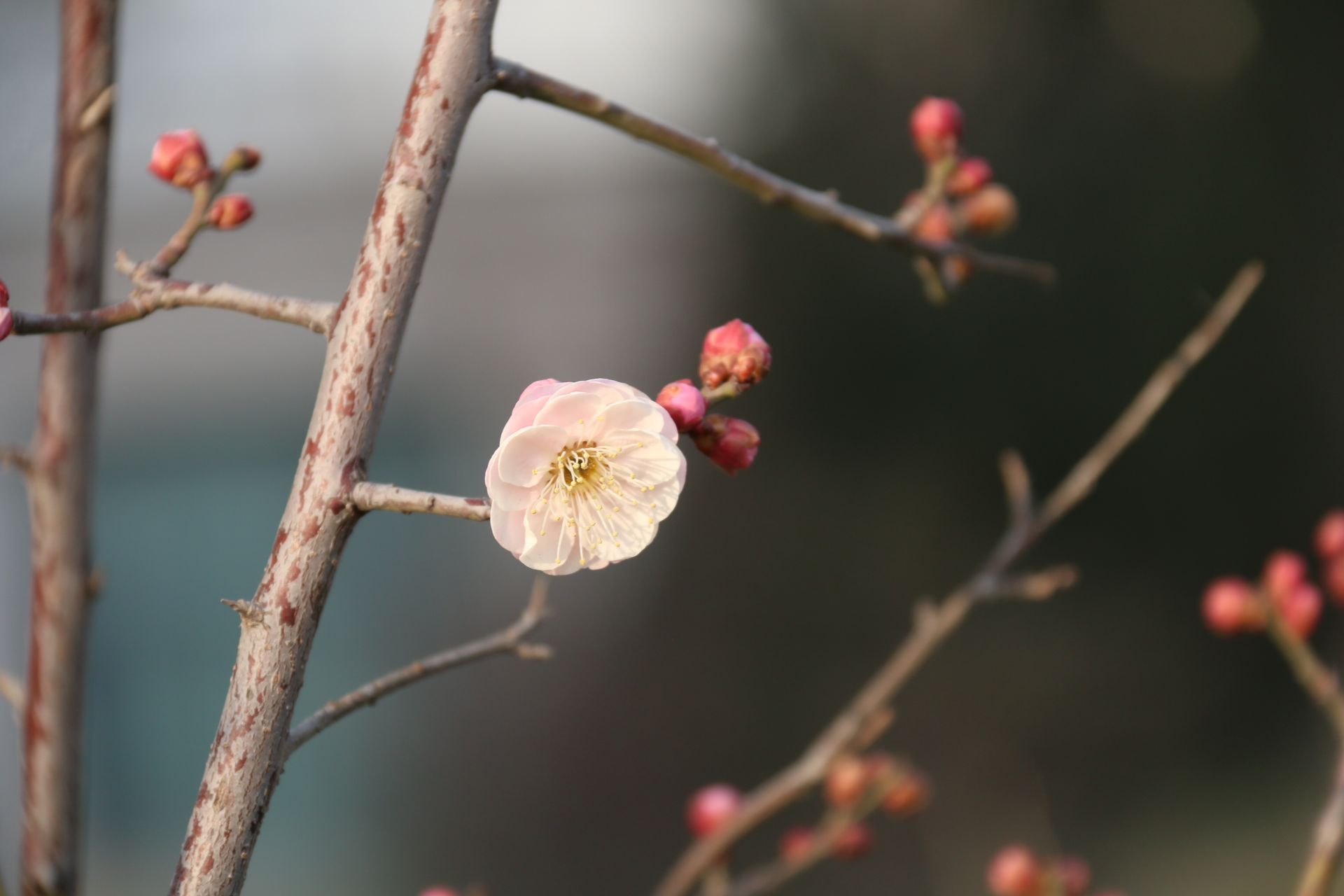 梅花归属于蔷薇科李属,是典型的落叶小乔木,树冠舒展如伞,枝干苍劲曲折,自带文人墨客偏爱的傲骨姿态。色彩丰富多样,纯白、粉红、深红应有尽有,唯独没有黄色,花瓣纤薄柔软,形态更显温婉灵动。