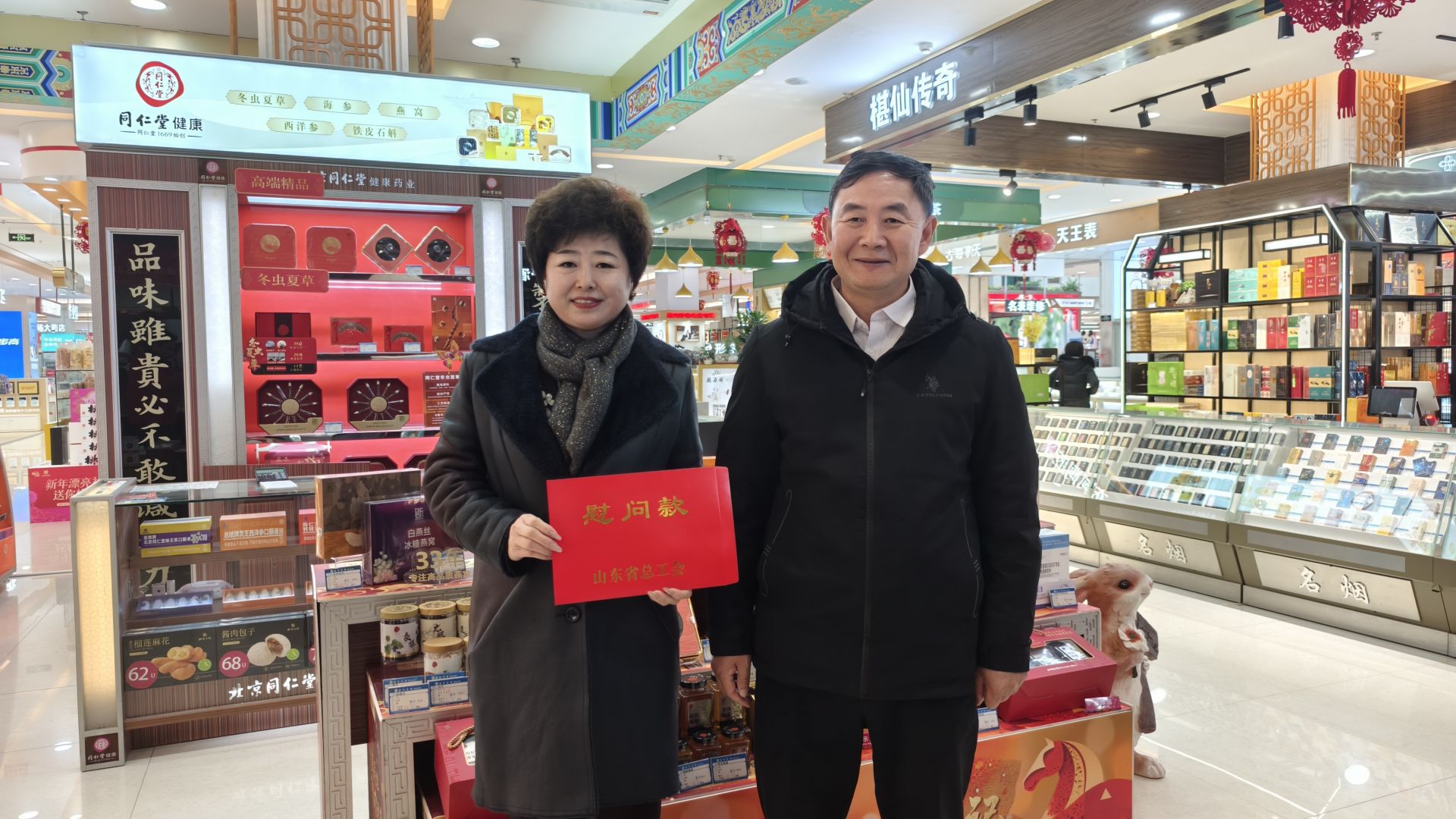 1月23日,山东省总工会常委、省财贸金融工会主席、一级调研员倪道余一行到宁津德百广场,开展“送温暖”慰问活动并调研劳模创新工作。德州市总工会党组书记、常务副主席杜朝生等陪同调研。德百集团党委副书记、工会主席张月娟参加活动。