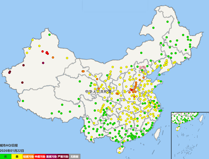 ▲1月22日全国PM2.5浓度分布(来源:中国环境监测总站)