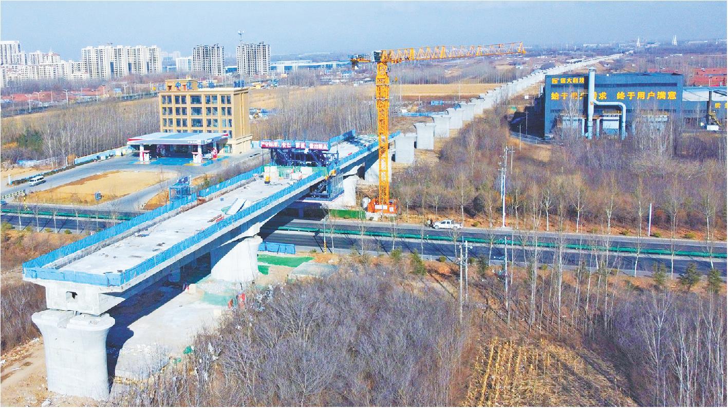 □记者张蓓 通讯员张臣意报道 潍宿高铁跨潍坊特大桥宝通东街(G308国道)连续梁施工现场。