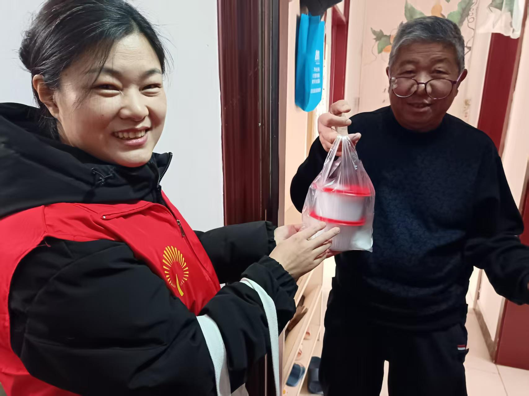 活动现场暖意融融,关爱更是延伸到活动现场的每一个角落。考虑到高龄老人、独居老人等特殊群体出行不便,工作人员们化身“暖心使者”,将一碗碗封装完好的热粥挨家挨户送到他们手中,同时送上诚挚的节日问候与冬日关怀。“孩子上班忙,你们还特意跑一趟送粥,真是太贴心了!”张大爷接过热粥,眼眶泛起暖意。一碗碗腊八粥,不仅承载着温暖、圆满、吉祥、健康的美好愿景,更让老年群体足不出户便感受到街道的牵挂与温情。