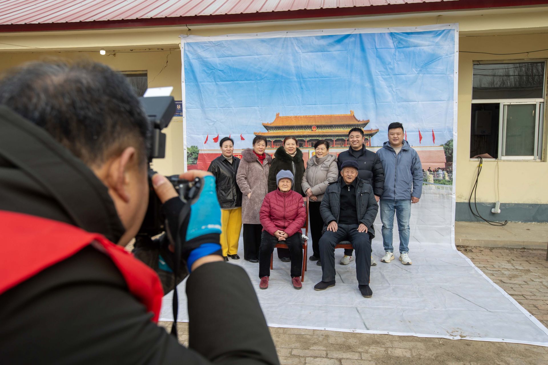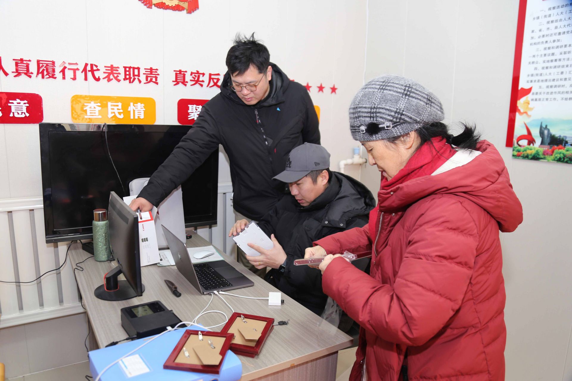 上午9时,水萝卜李村村委会小院已是一派暖意融融、喜气洋洋的景象。一面庄严的“天安门”大型喷绘背景前,村民们或携全家老幼定格几世同堂的温馨,或与秧歌队成员一同舞动红扇、绽放笑颜,亦或是祖孙手持“福”字、眉眼间满是幸福。摄影志愿者们精准捕捉着每一个真情流露的瞬间,清脆的快门声此起彼伏,将浓浓的年味与团聚的喜悦永久珍藏。更贴心的是,拍摄完成后,志愿者们现场进行专业打印与装裱,将一幅幅精美的照片即时送到村民手中。“拍得真精神!这相框也好看!”手捧照片的村民们赞不绝口,笑容比阳光更灿烂。