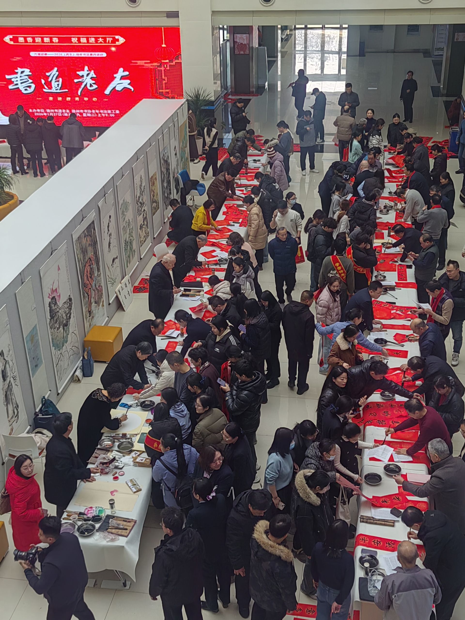 腊月的风还带着料峭寒意,德州市政务大厅里却已是暖意融融。当“书道老友”的红底白字在大屏上亮起,当德州市书协老书家工委及书道老友的书画家们如约而至,一场墨香与年味交织的文化盛宴,便在市民的期盼中徐徐展开。