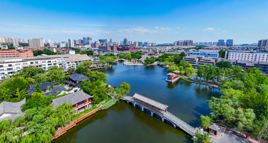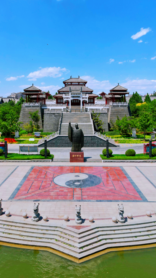 董子文化街的根脉,深植于历史土壤。相传西汉大儒董仲舒曾在此讲学,儒家思想在此萌芽流转。如今街区以汉唐风格为基调,占地150亩,千米长的街巷串联起董子像、读书台、繁露广场等节点,毗邻沙王河与柳湖水系,兼具北方的厚重与江南的秀逸。