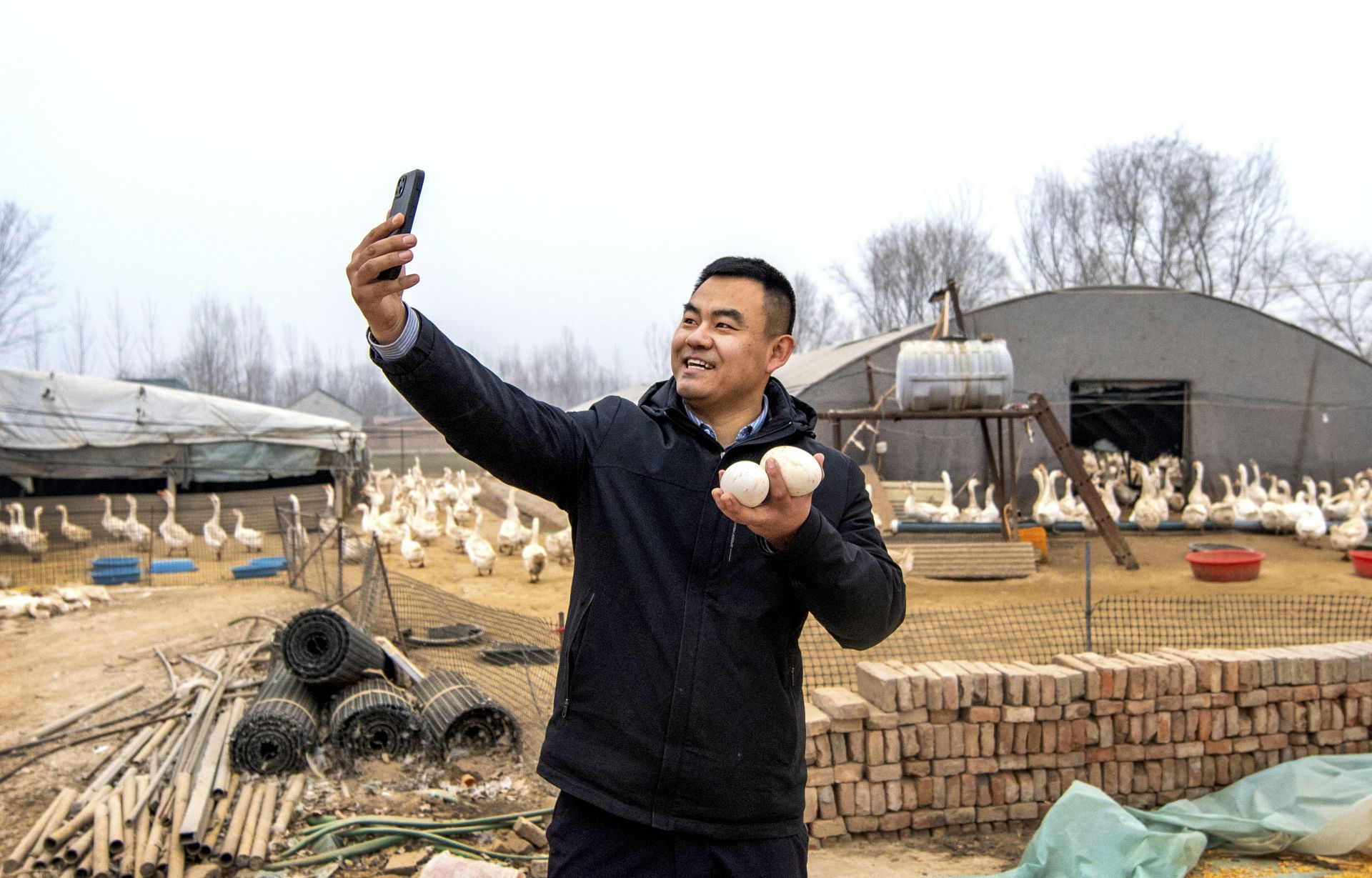 2020年,李洋通过德州市委组织部公开遴选,挑起了相衙镇付庄村党支部书记的担子。作为相衙镇“电商助农”的发起者,李洋的直播之路始于四年前一次偶然的尝试。彼时村内农户的鹅蛋滞销,蔬菜也因缺乏销路价格低迷,这位扎根乡村的“致富带头人”抱着试试看的心态开通直播,没想到首场就卖出300多枚鹅蛋,而春节期间的民俗主题直播,更是让助农成效事半功倍。72岁的村民张大爷说:“以前鹅蛋得骑车去镇上卖,一天也卖不了几个,现在李洋一直播,几百个鹅蛋几天就卖光了,还能卖上好价钱!”