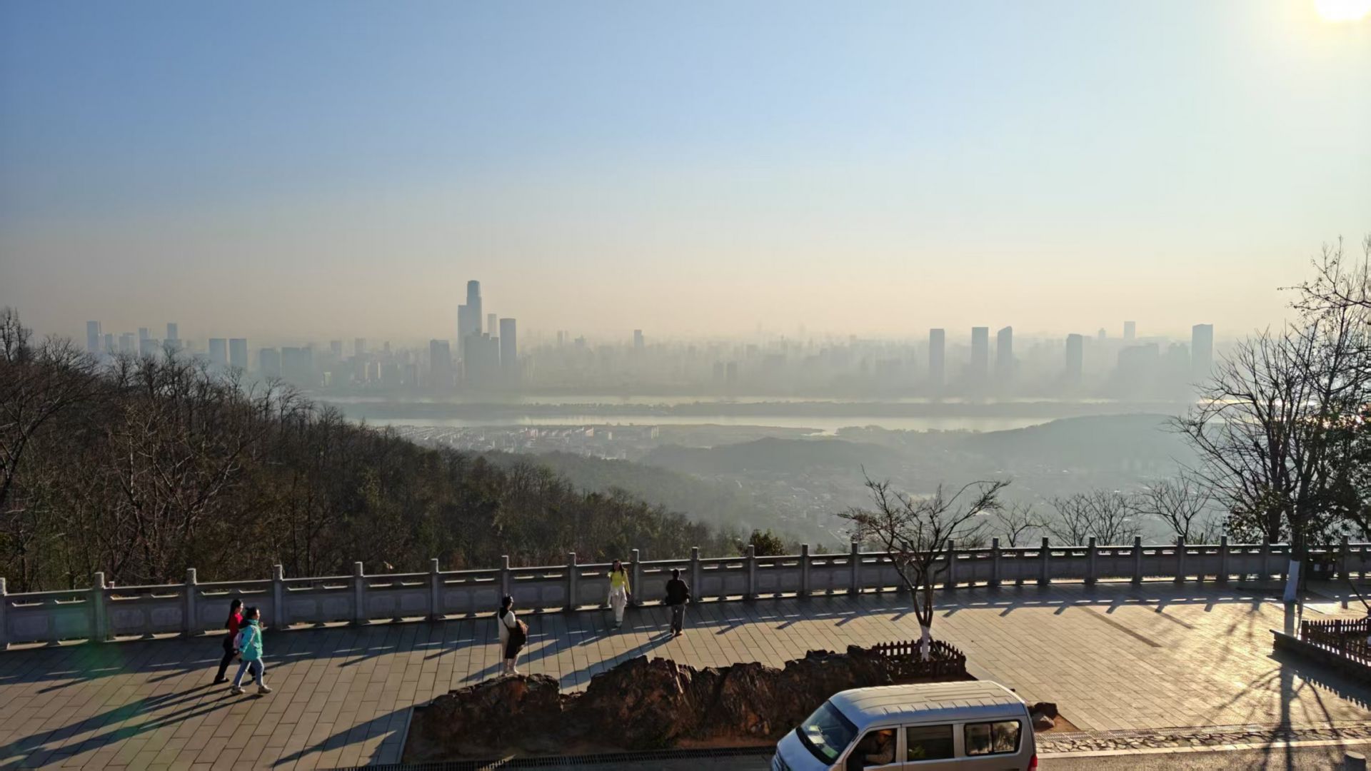 走走停停,约莫两小时便至山顶观景长廊。岳麓山最高峰碧虚峰海拔300.8米,立于栏边,却觉心胸豁然开朗。湘江如淡青绸带,静静铺向天际;江心橘子洲,似一艘永不启航的巨舰,泊在历史烟波里;对岸五一广场的楼群,在薄雾中勾勒出嶙峋剪影,那是今日长沙蓬勃跳动的脉搏。山河城郭,往昔今朝,于一瞥之间,完成了一场无言的对话。