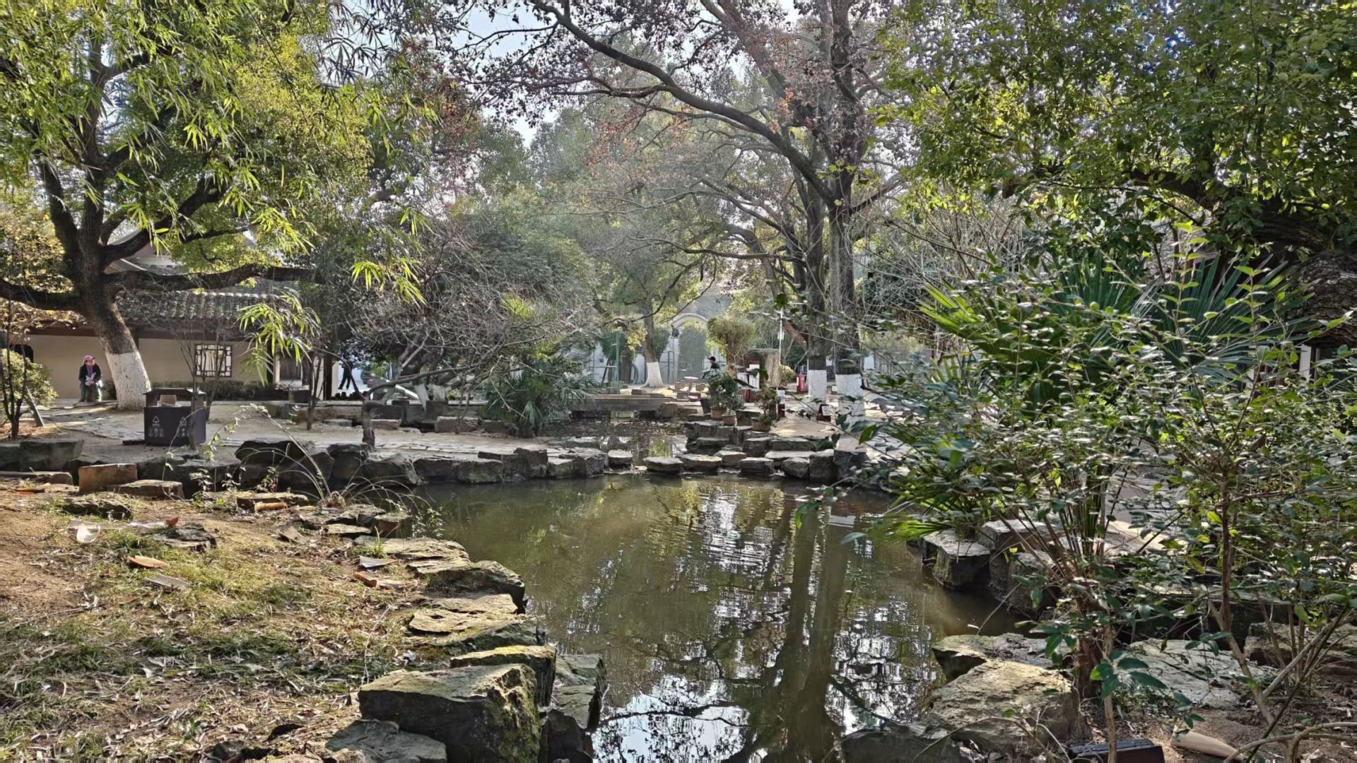 穿过广场,岳麓书院便在眼前,门楣静肃,院落幽深。风过处,书香漫溢,那是千年文脉未绝的轻息。四大书院之中,唯此院依旧鲜活,庭阶间似还低语着乾道三年(1167年)朱张会讲的旧事,37岁的朱熹与34岁的张栻往复论道两月余,开书院会讲之先河,为湖湘文脉埋下深根,二人亦借此结为莫逆之交。转出书院,循石径上行,爱晚亭便俏立在几株红枫间。枫叶虽过盛时,仍有几簇殷红未褪,如将熄未熄的炭火,暖了初冬的清寂。亭额“爱晚亭”三字,为毛泽东亲题,墨迹洒脱,自有挥洒生气。青年时的他,常与同道聚于此间,纵论家国天下,那些掷地有声的争辩,想必曾惊起亭边宿鸟,振翅划破林杪。
