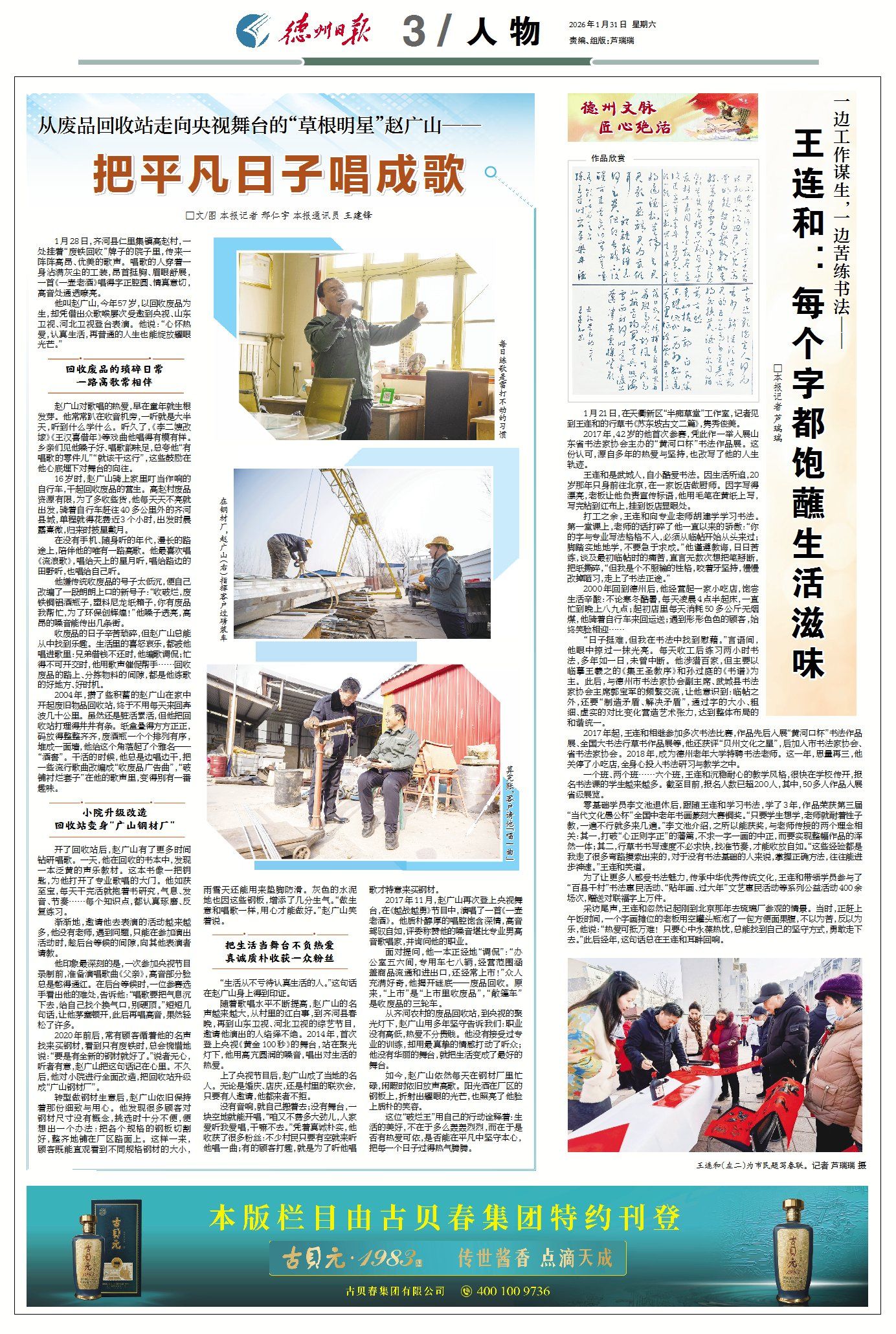 “日子挺难,但我在书法中找到慰藉。”言语间,他眼中掠过一抹光亮。每天收工后练习两小时书法,多年如一日,未曾中断。他涉猎百家,但主要以临摹王羲之的《集王圣教序》和孙过庭的《书谱》为主。此后,与德州市书法家协会副主席、武城县书法家协会主席郭宝军的频繁交流,让他意识到:临帖之外,还要“制造矛盾、解决矛盾”,通过字的大小、粗细、虚实的对比变化营造艺术张力,达到整体布局的和谐统一。