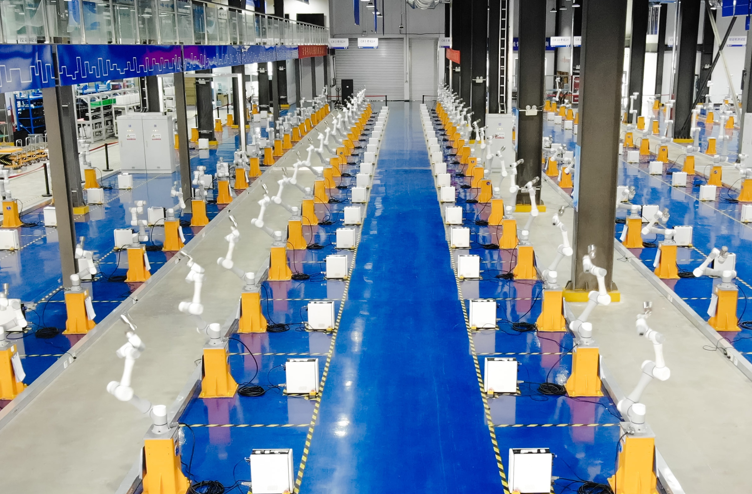 与此同时,在300多公里外的Atom诞生地——越疆智能机器人日照生产基地,又是另一番繁忙景象:近300台协作机器人旋转着智能机械手臂,有的按照路线设定划出优美弧线,有的举着不同重量的铁块,转足了圈数后还会停下来检测一下精度。