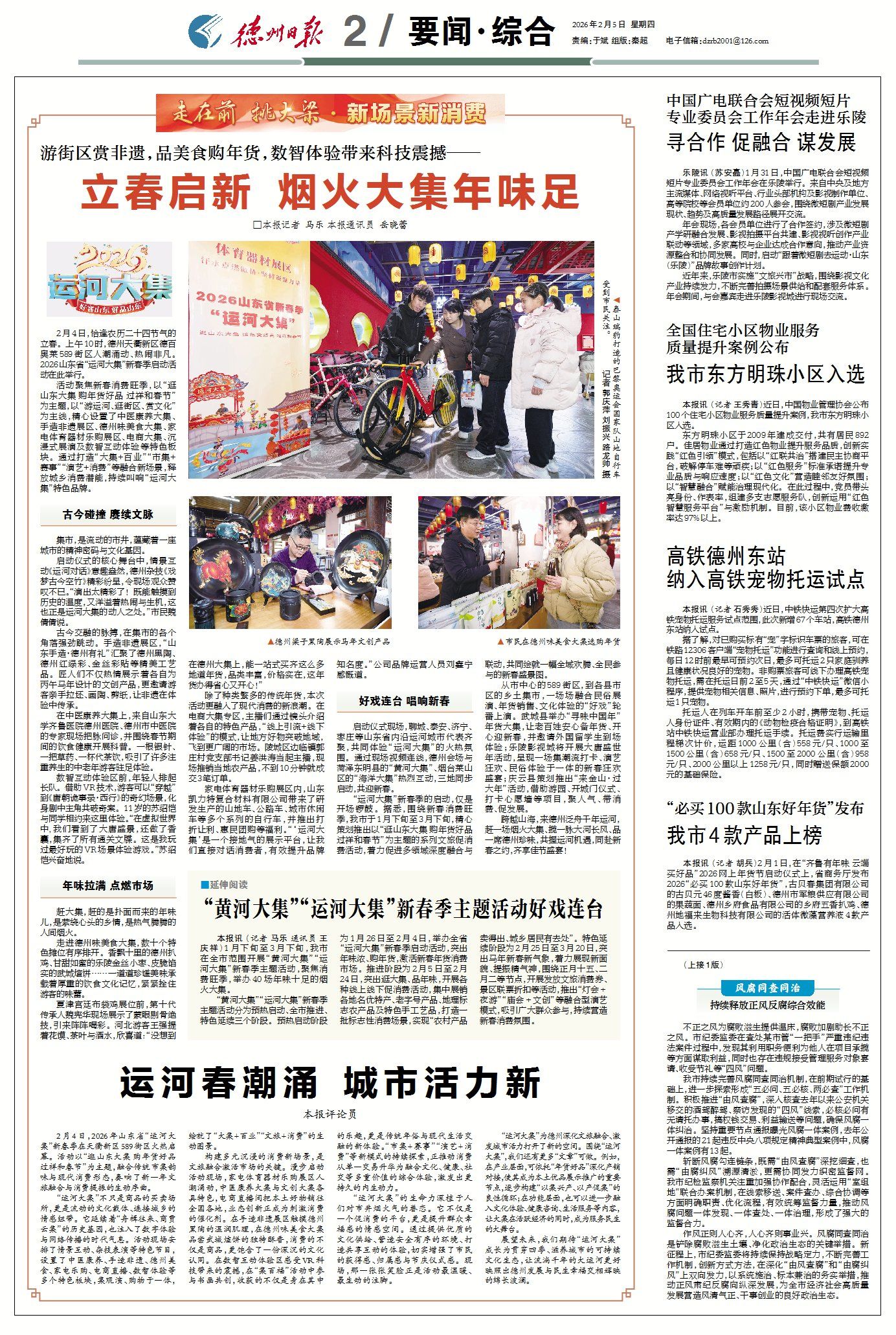 “运河大集”为德州深化文旅融合、激发城市活力打开了新的空间。围绕“运河大集”,我们还有更多“文章”可做。例如,在产业层面,可依托“年货好品”深化产销对接,使其成为本土优品展示推广的重要节点,逐步构建“以集兴产、以产促集”的良性循环;在功能层面,也可以进一步融入文化体验、健康咨询、生活服务等内容,让大集在活跃经济的同时,成为服务民生的大舞台。